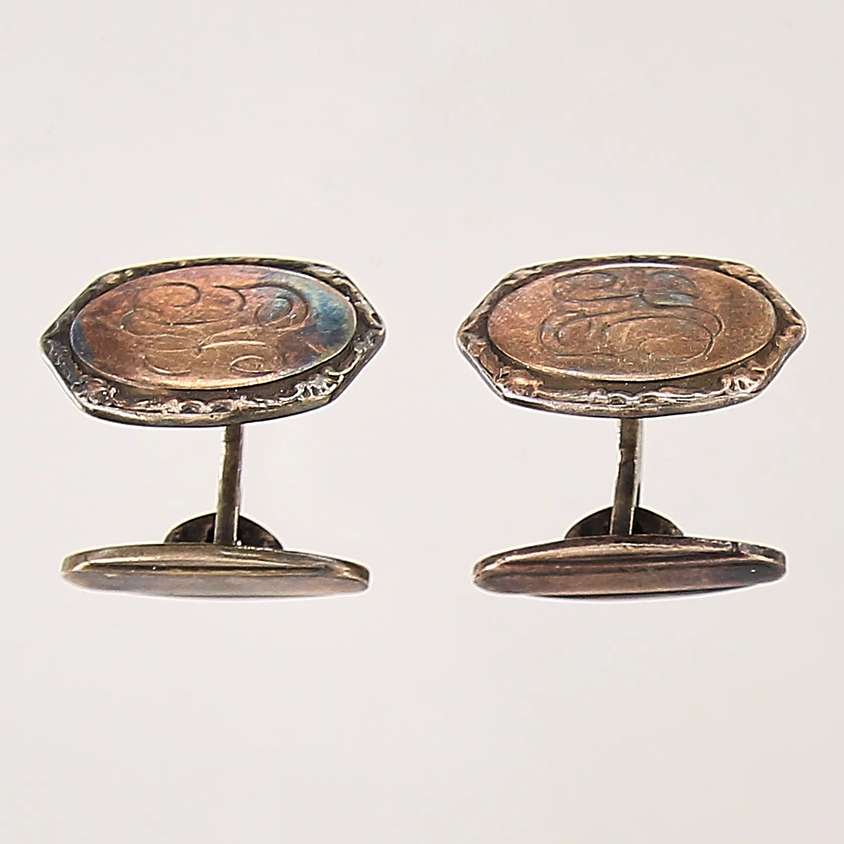 Ett par manschettknappar, 21,4x15,1mm, monogram gravyr, förgyllt silver 830/1000 Vikt: 12,3 g.