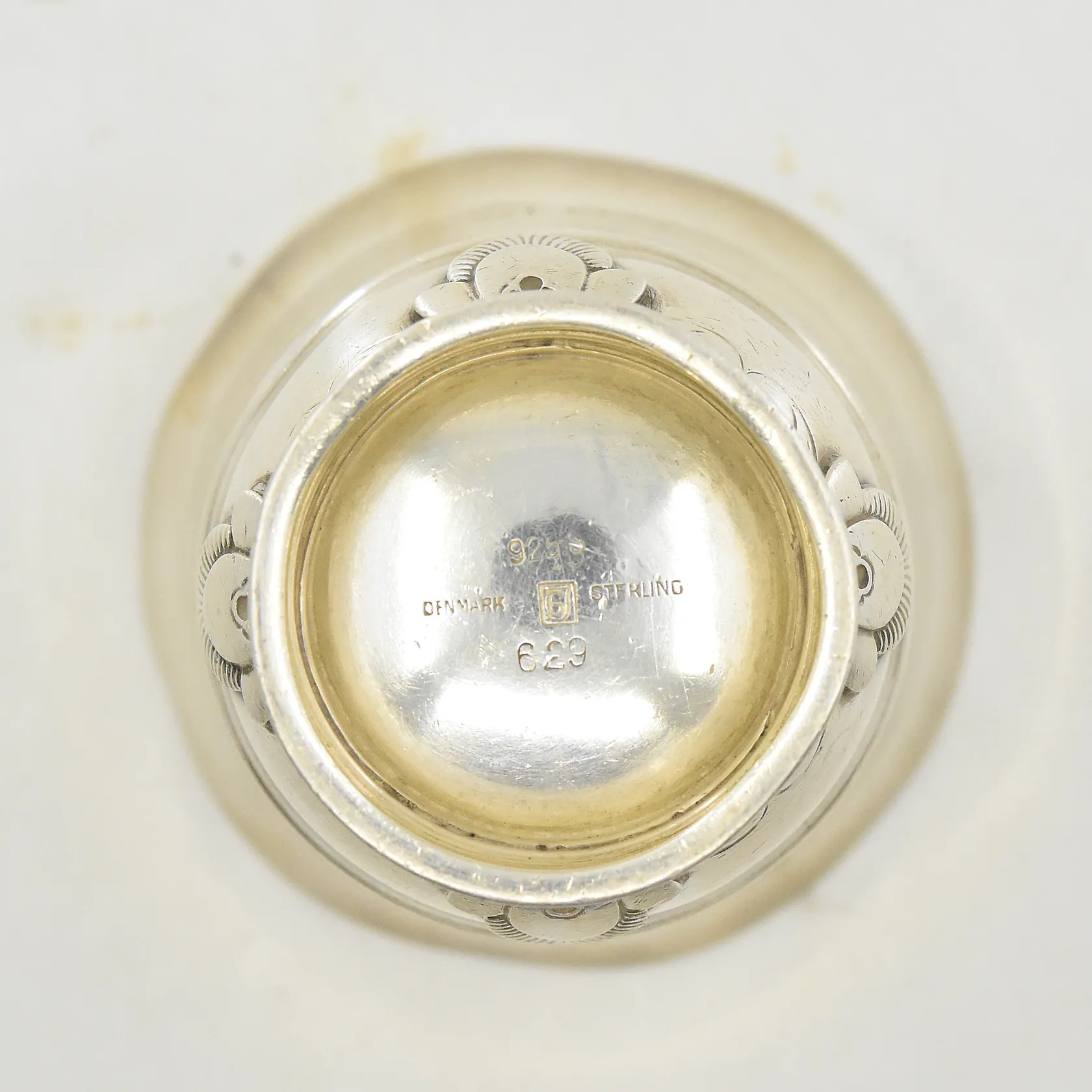 Dopmugg Georg Jensen Denmark, modell 629, höjd ca 7 cm, Ø58 mm, namngravyr, Sterling 925/1000 silver. Vikt: 84,3 g.
