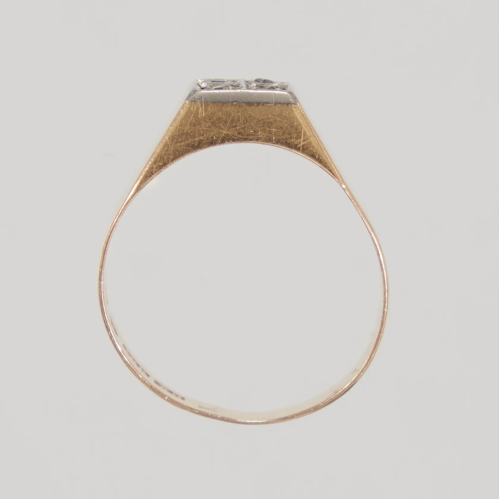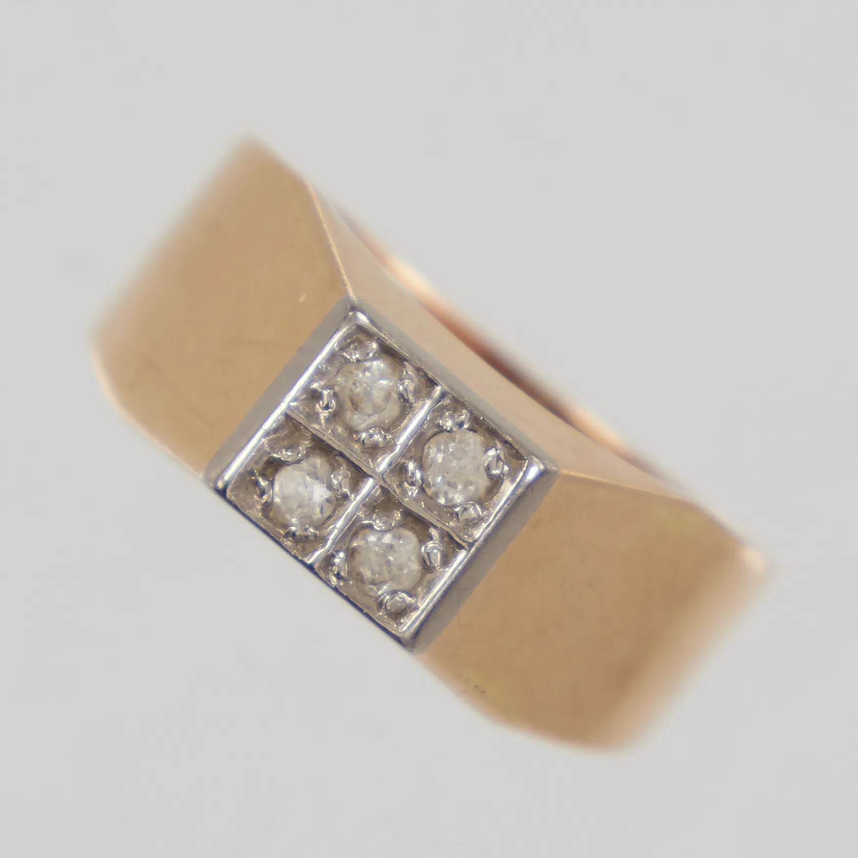 Ring stl 17¾, bredd 4-7,5mm, vita stenar, slitage, 18K Vikt: 3,3 g.