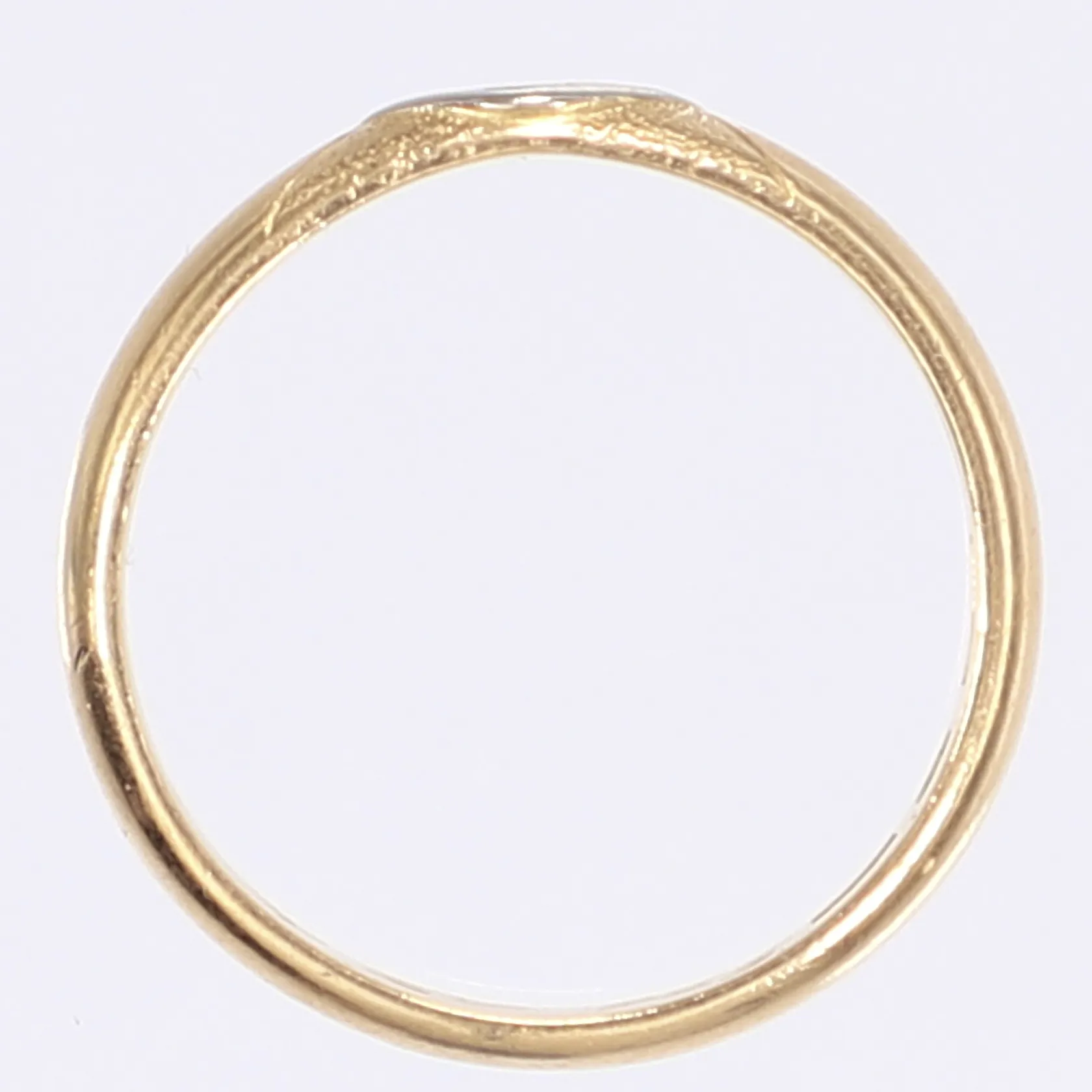 Ring med dia 0,03ct enl gravyr stl 17¾ bredd 3mm gravyr 18K Vikt: 3,5 g.