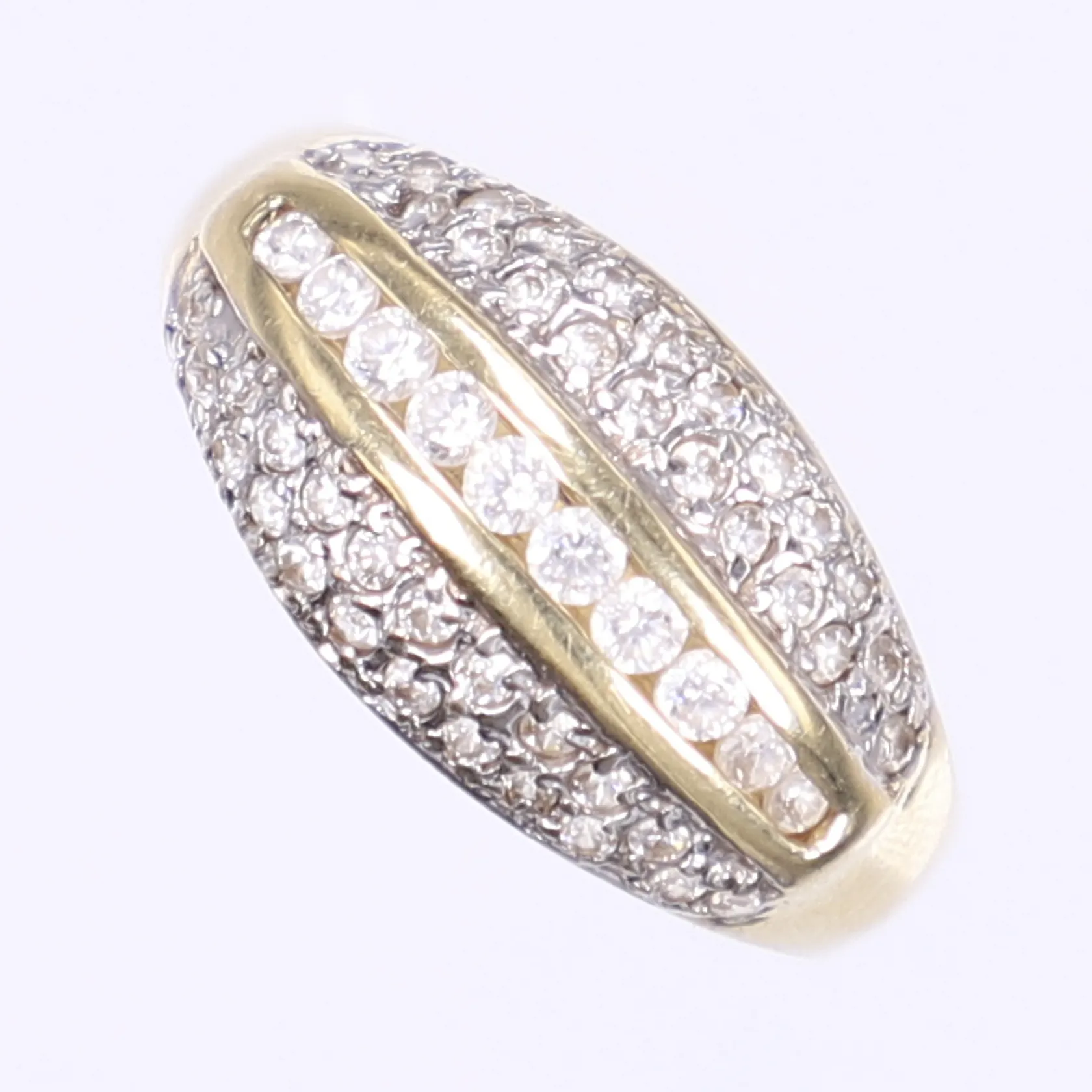 Ring med vita stenar stl 18½ bredd 3-11mm 14K Vikt: 4,5 g.