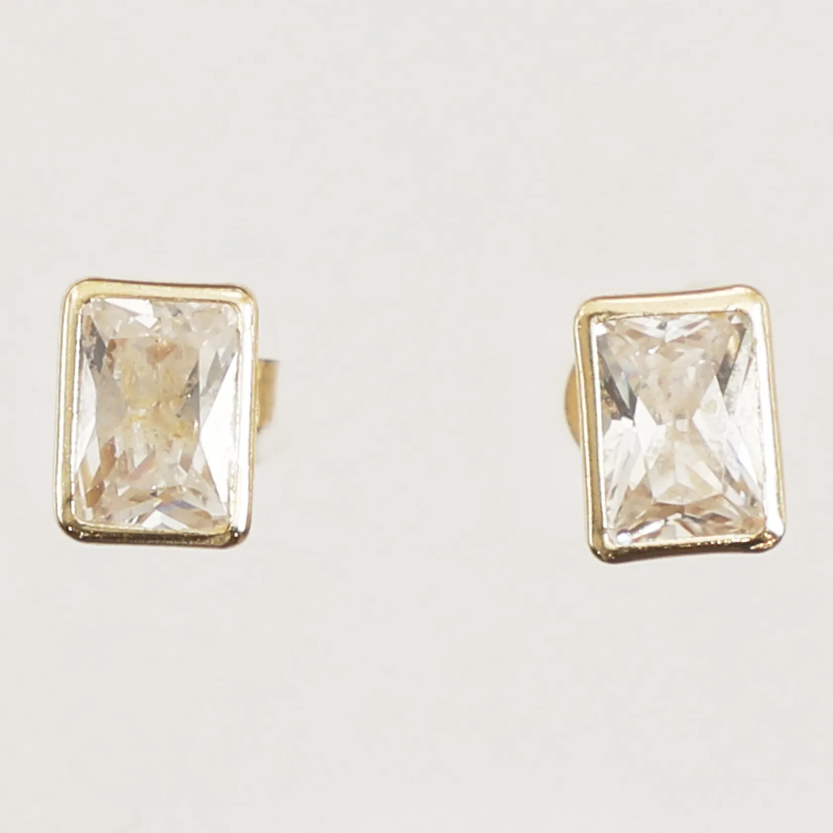 Ett par örhängen med vita stenar, längd 7,5mm, bredd 5,5mm, 9K Vikt: 1,1 g.