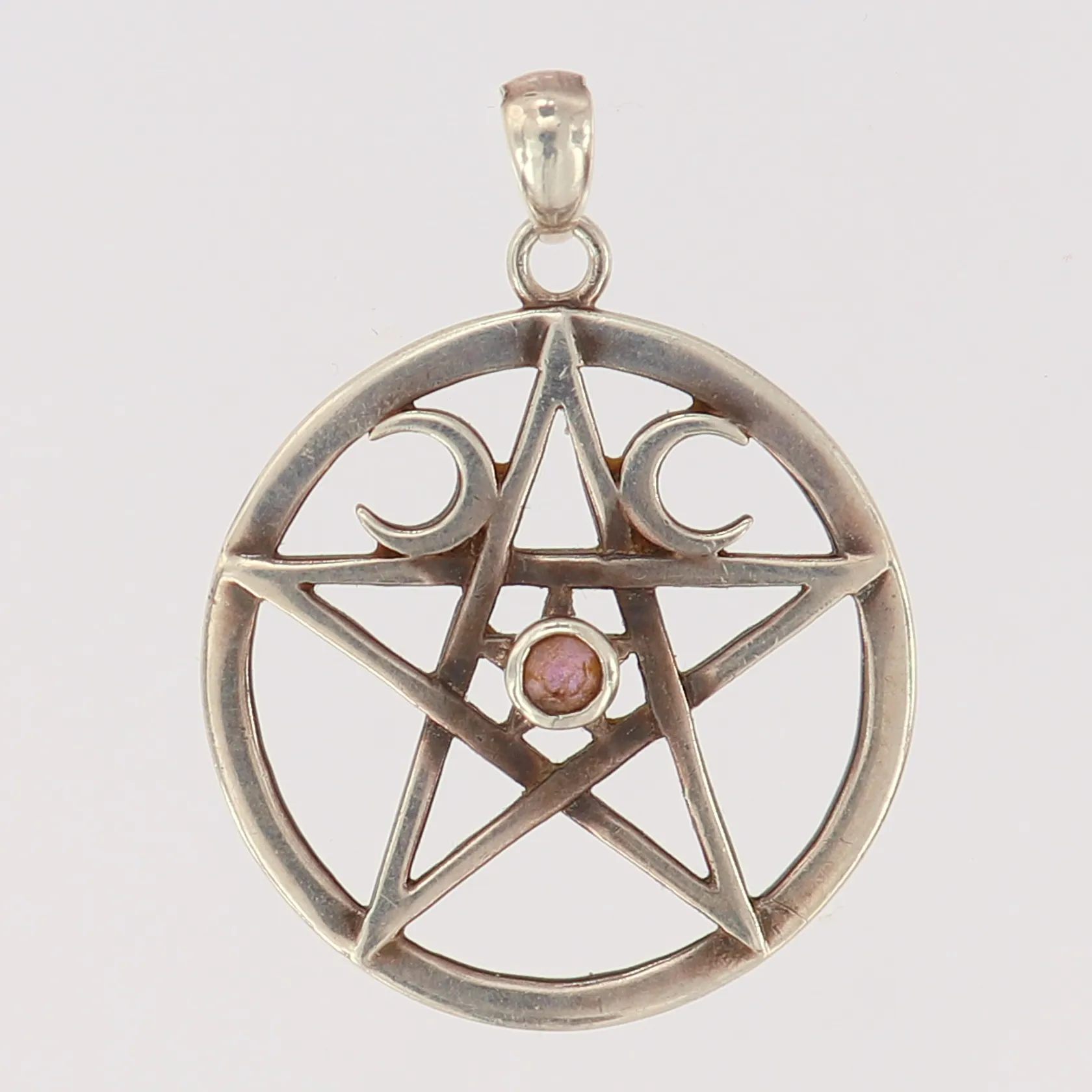 Hänge med vit sten och stjärndekor, Ø 27mm, silver 925/1000 Vikt: 5,4 g.