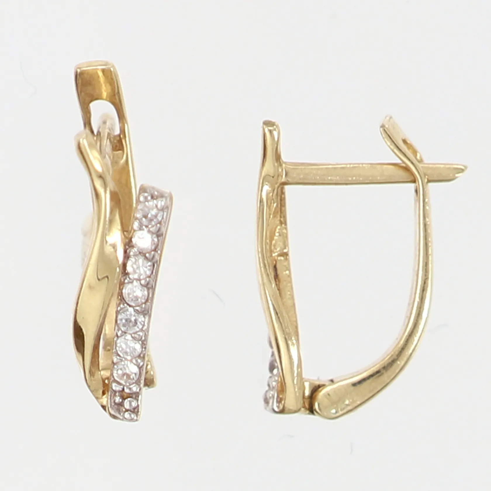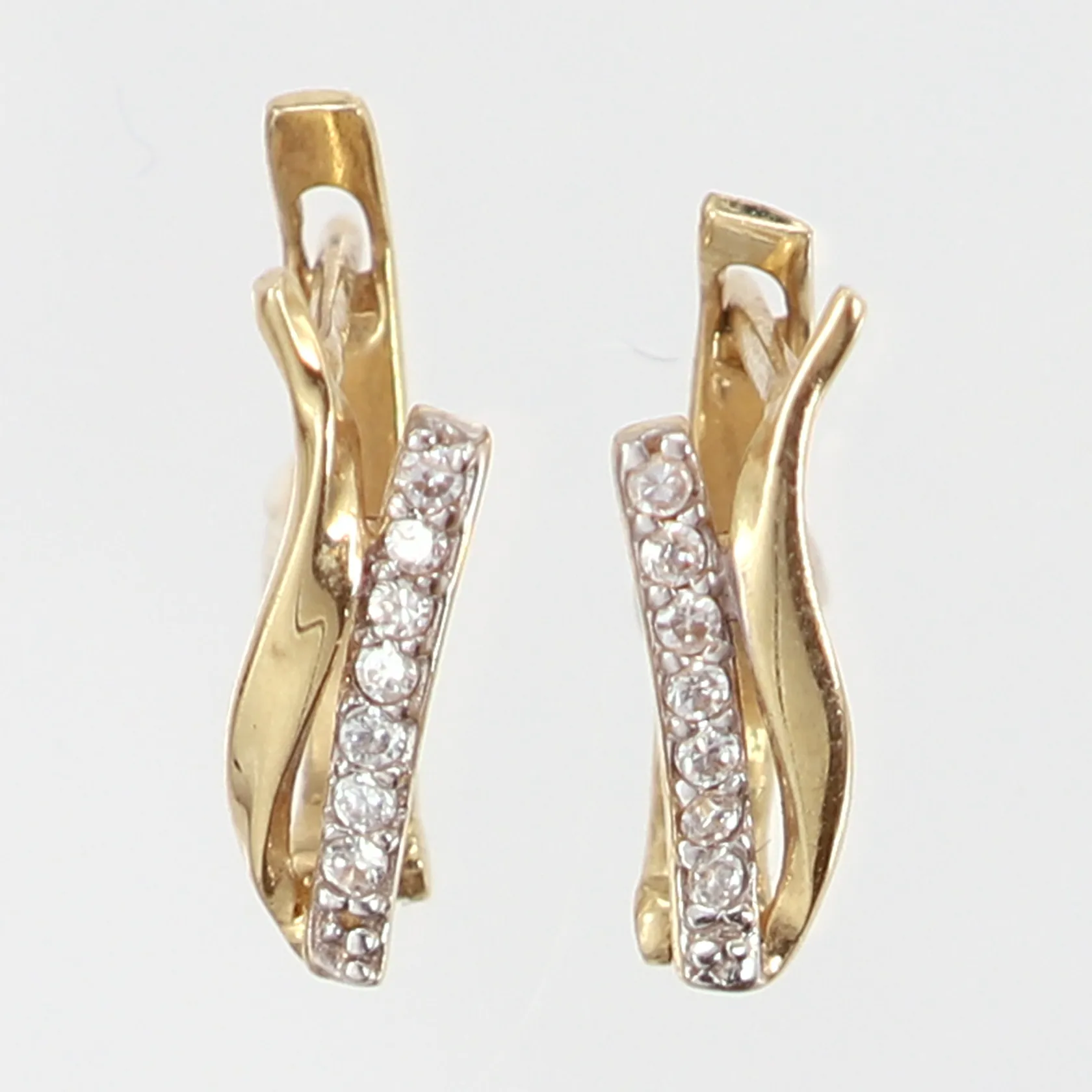 Ett par örhängen med vita stenar, 15x4mm, 14K Vikt: 2,1 g.