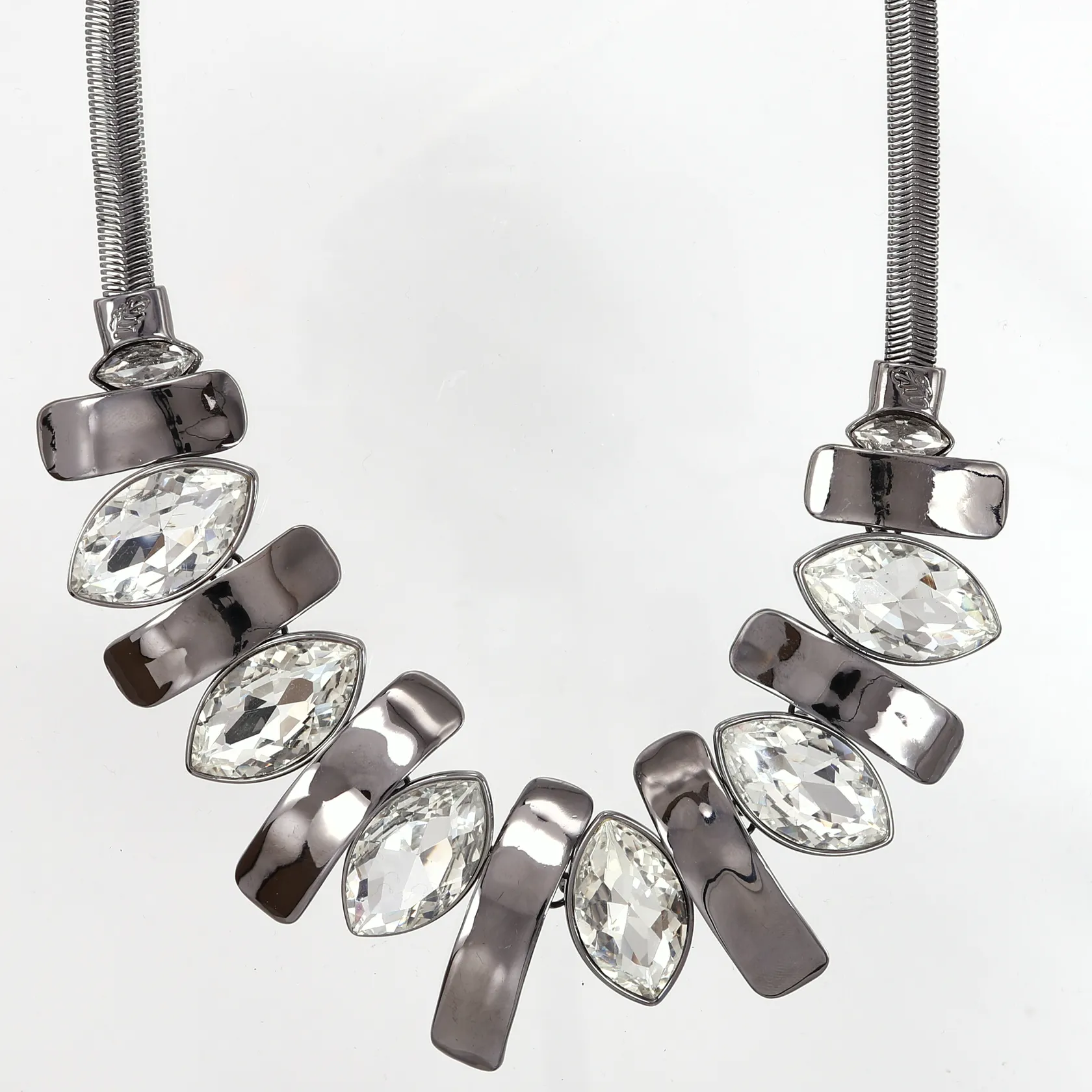Collier från Ioaku 52cm, bredd: 10-50mm, vitmetall med glasstenar