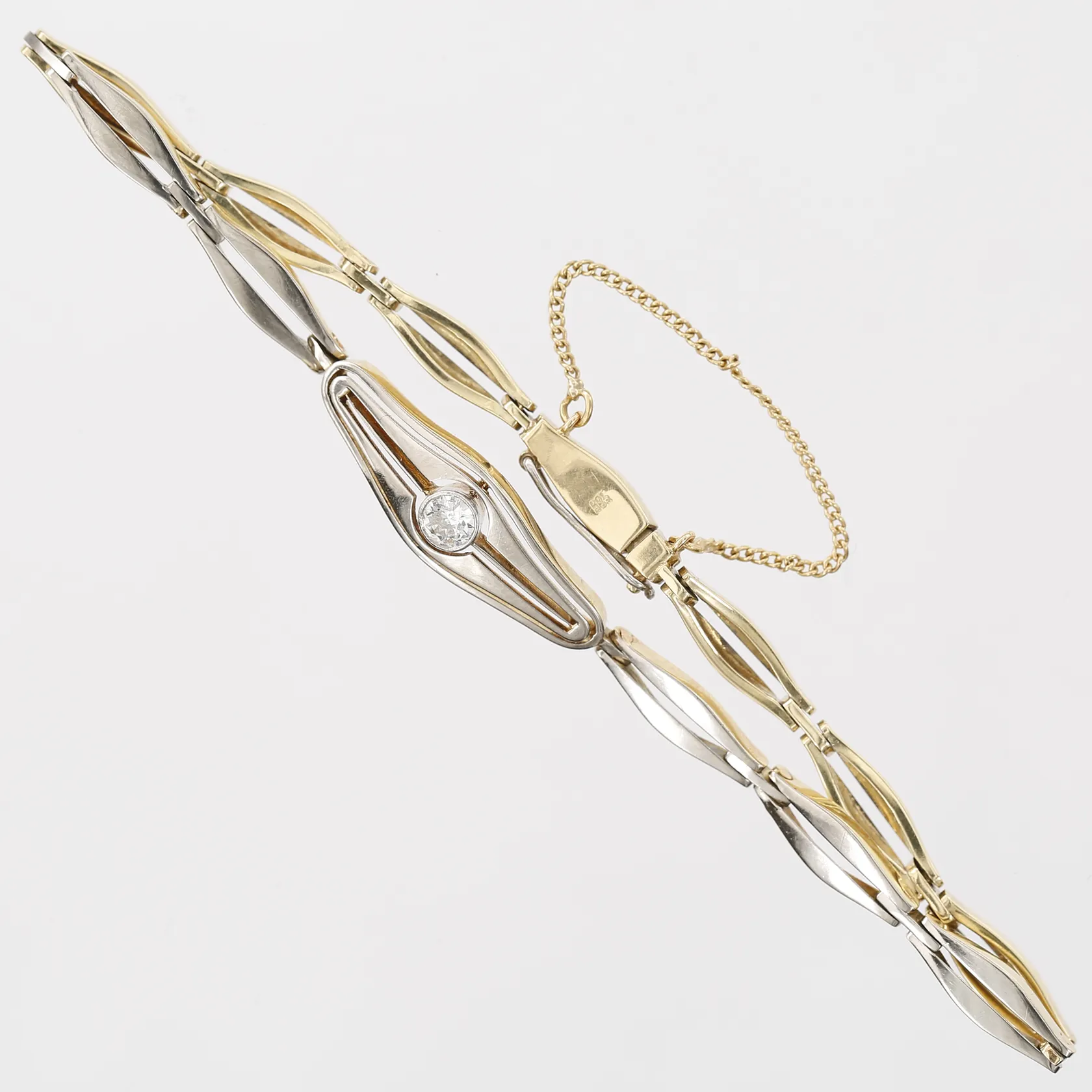 Armband med äldre briljantslipad diamant ca 0,20ct, kvalitet ca TW-W(G-H)/SI, längd 18½cm, säkerhetskedja, 14K guld Vikt: 9,9 g.
