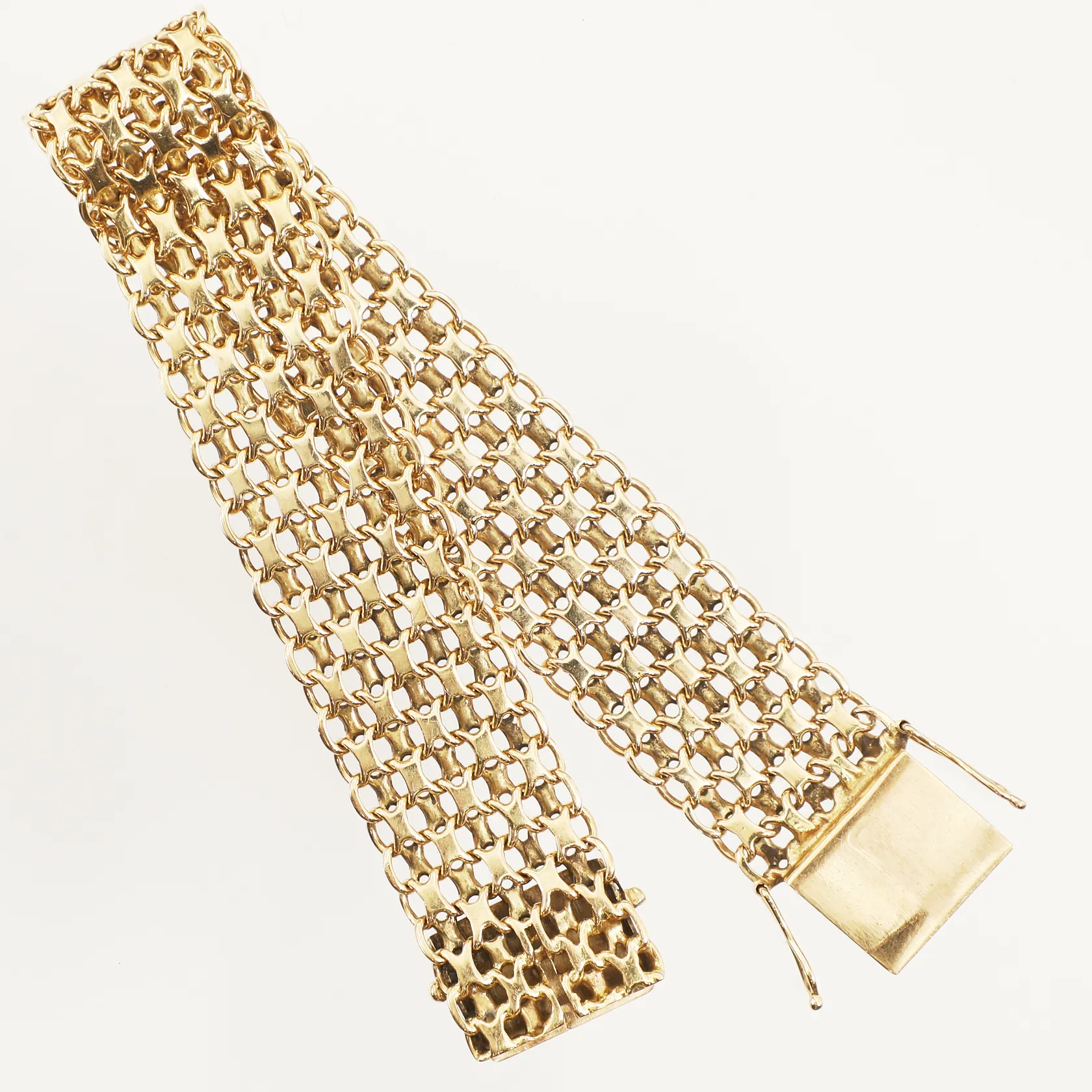 Armband X-länk, längd 19,5cm, bredd 18mm, Brofod Aktiebolaget Falköping 1963, 18K Vikt: 42,3 g.