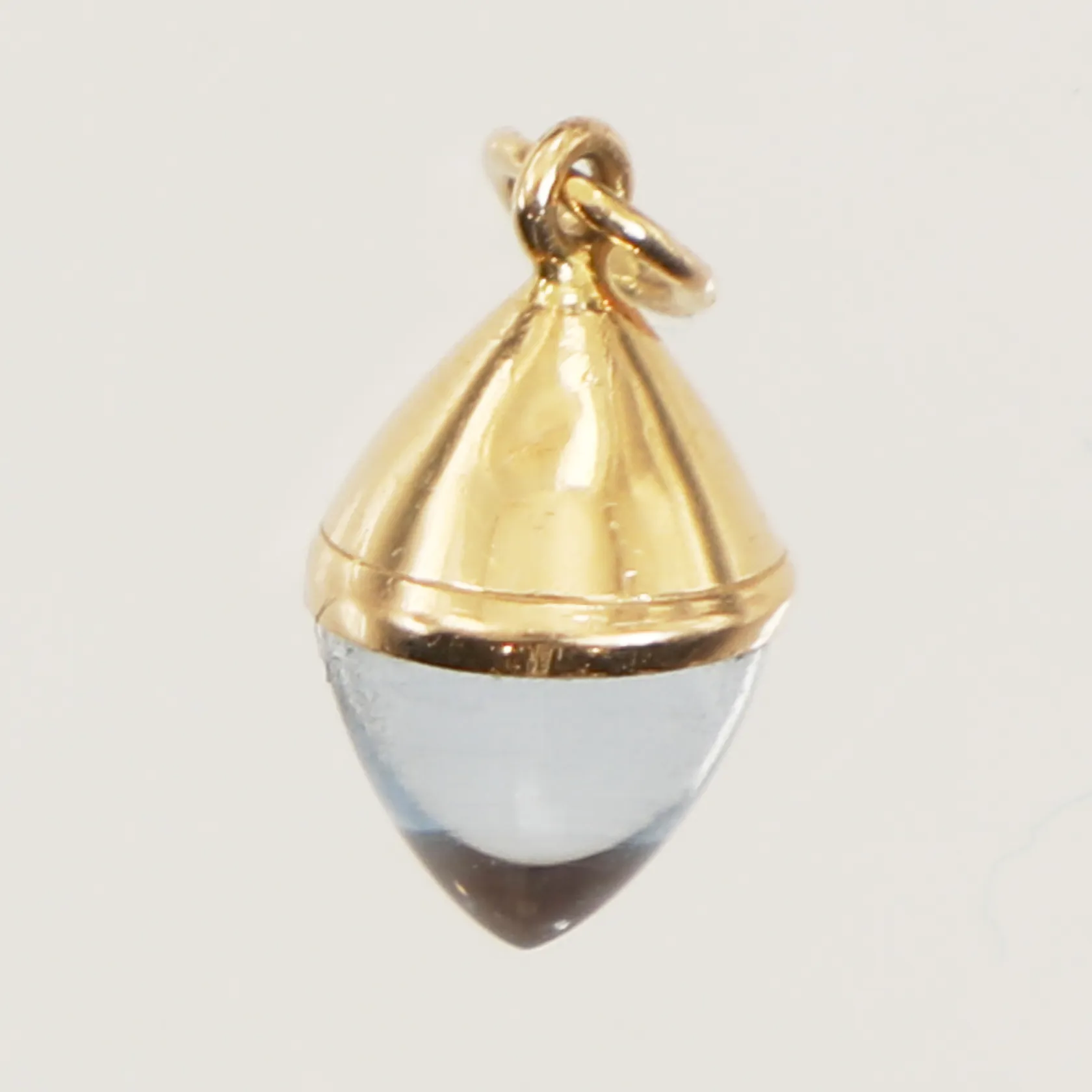 Hänge med sten, längd 16mm inklusive ögla, bredd 7mm, 18K Vikt: 0,9 g.