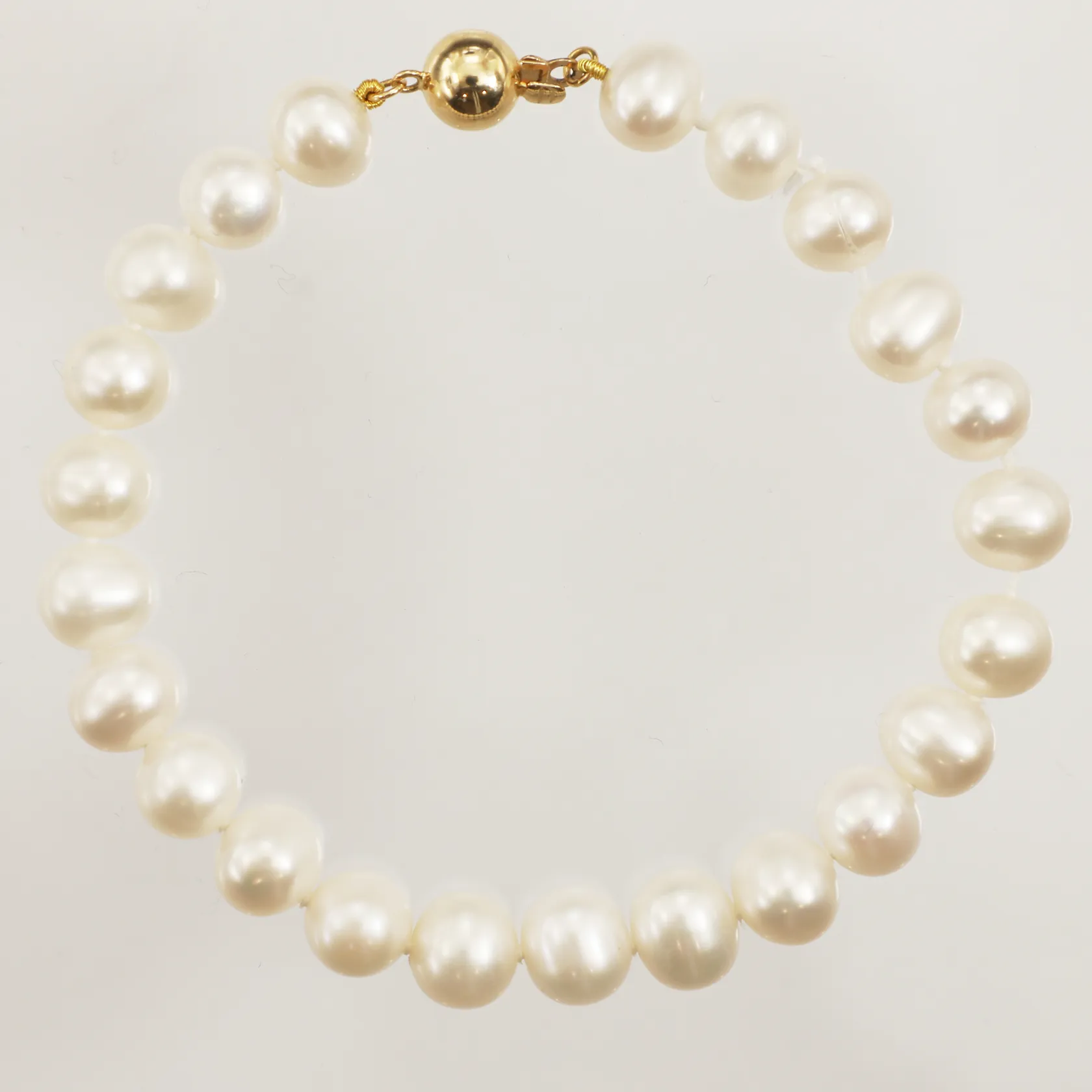 Armband med odlade sötvattenspärlor ca Ø7,8mm, längd 19cm, GHA, guldlås 18K, bör träs om.