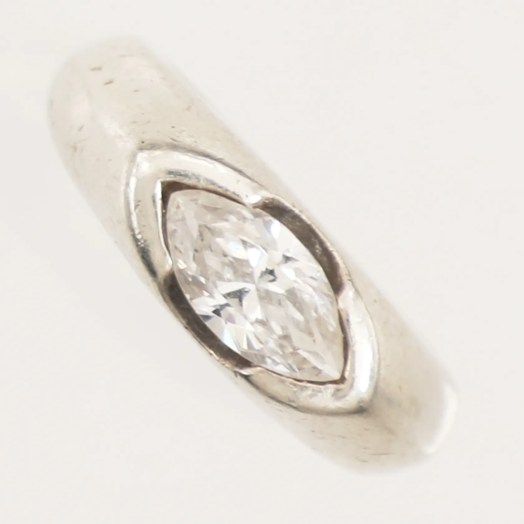 Ring med vit sten, stl 17, bredd 4,6-7mm, Guldfynd, 925/1000 silver Vikt: 7,1 g.