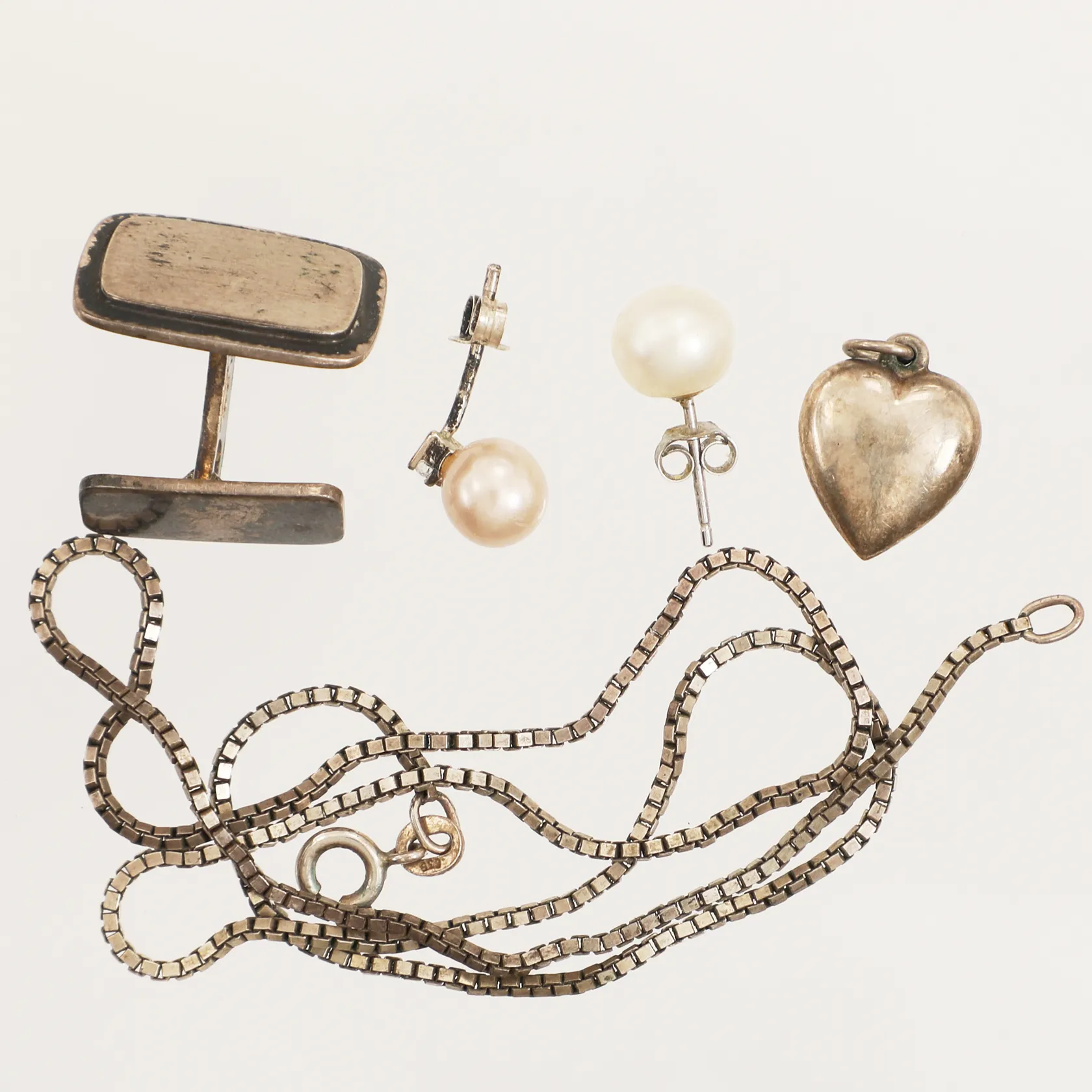 Diverse silver, pärlor, silver Vikt: 11,8 g.
