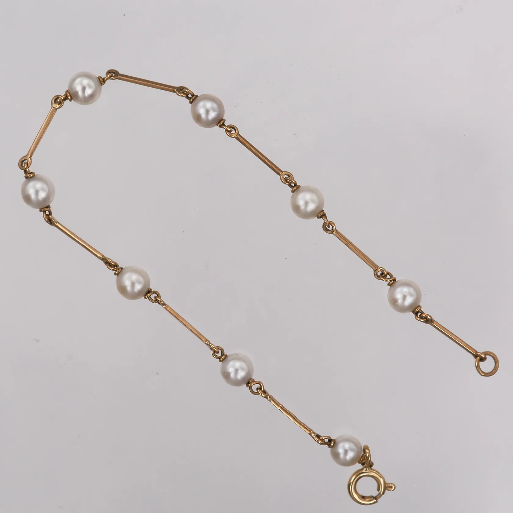 Armband med odlade saltvattenpärlor, längd 20½cm, bredd 5mm, 18K guld Vikt: 5 g.