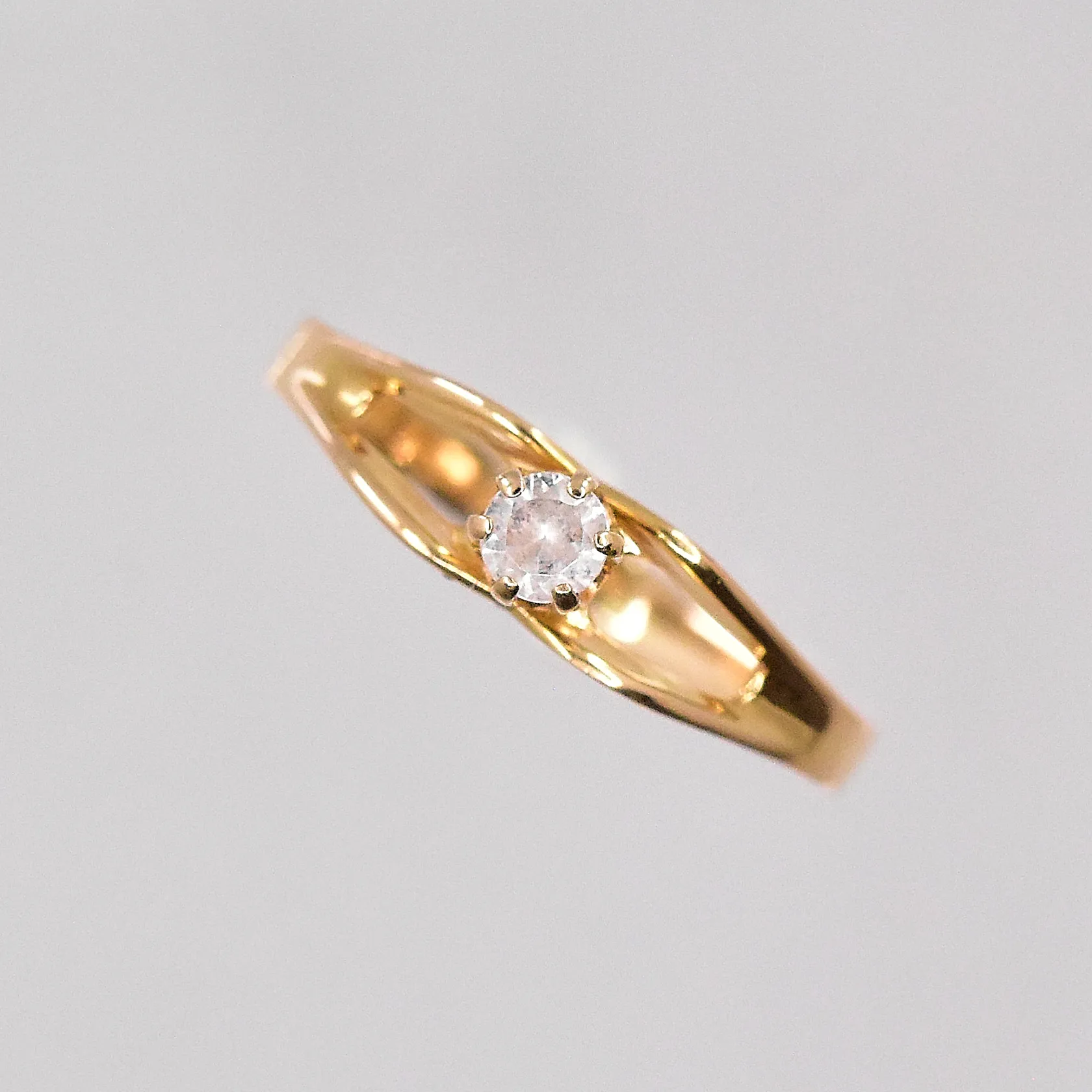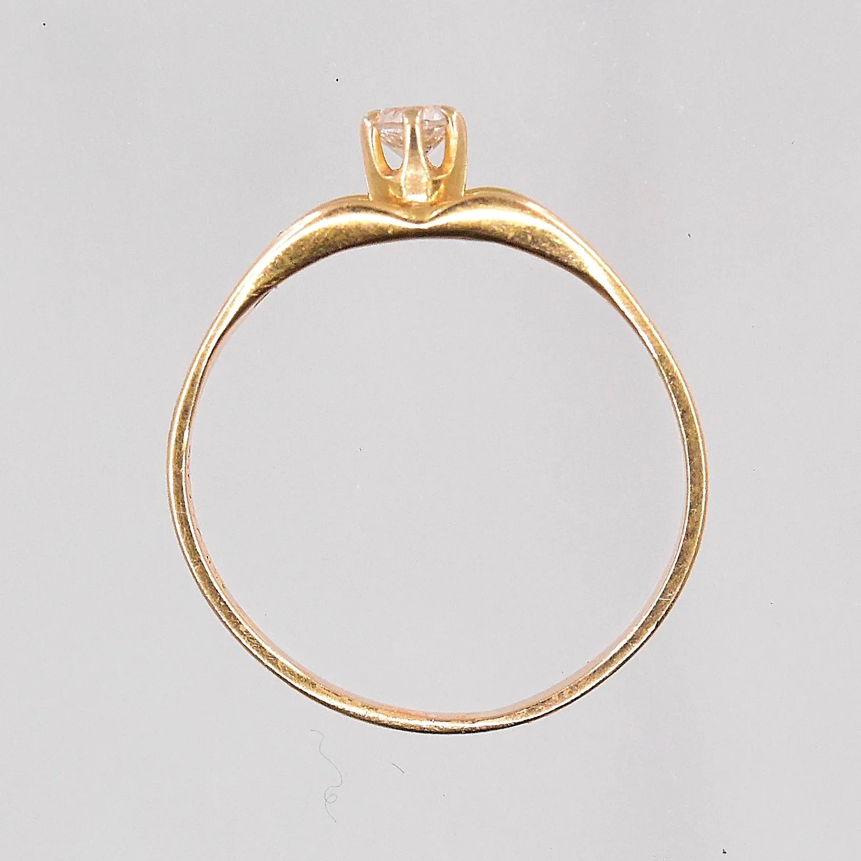 Ring stl 15¾, bredd 4x1,9mm, vit sten, 18K Vikt: 1,4 g.