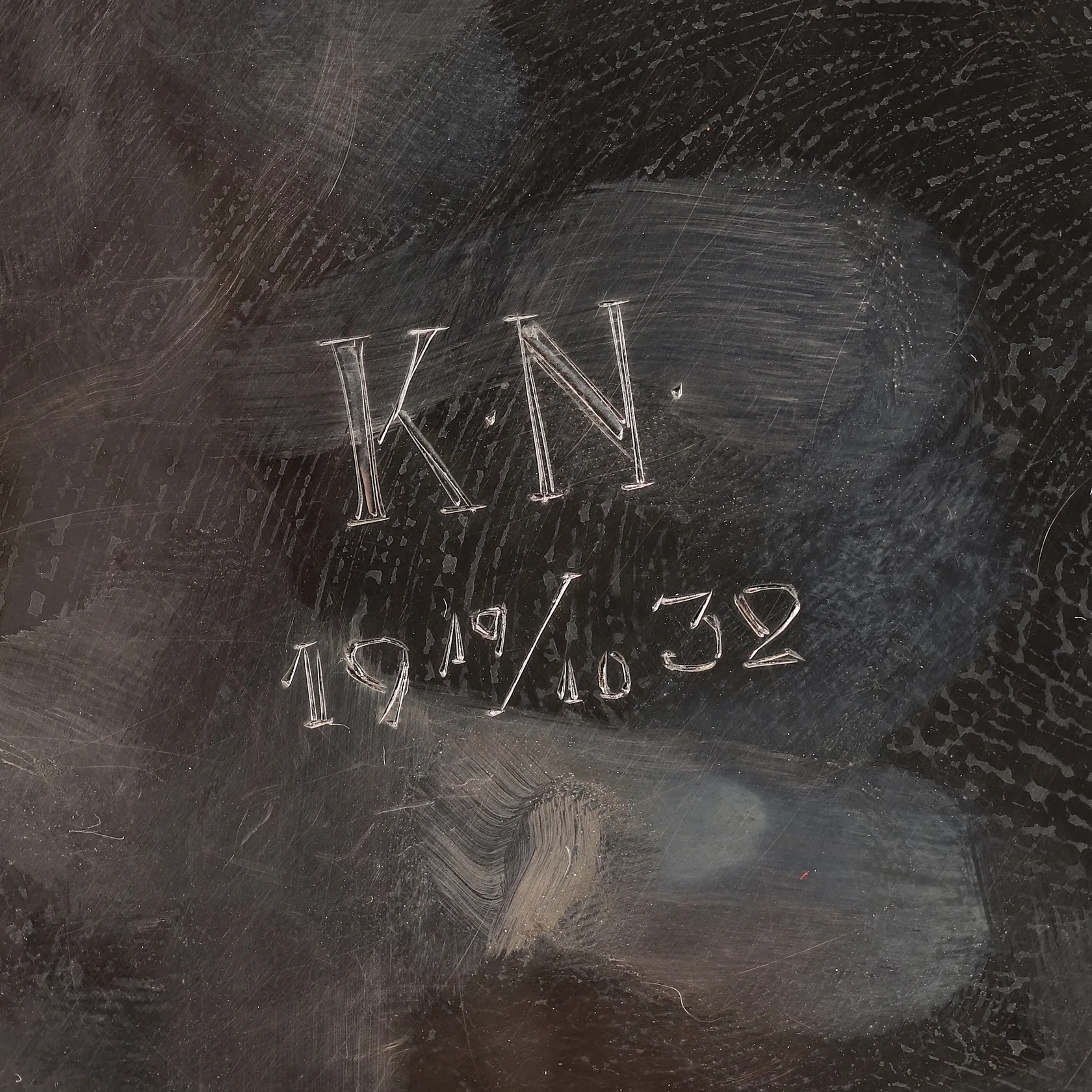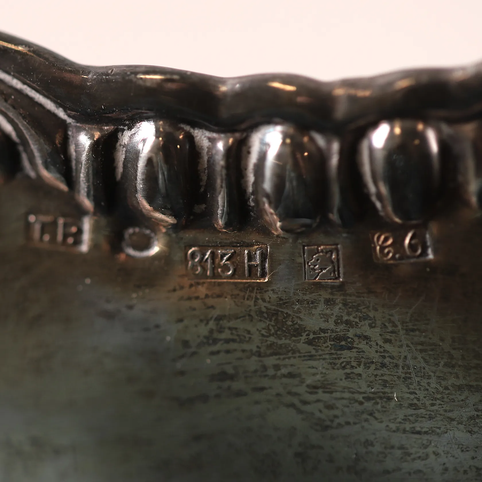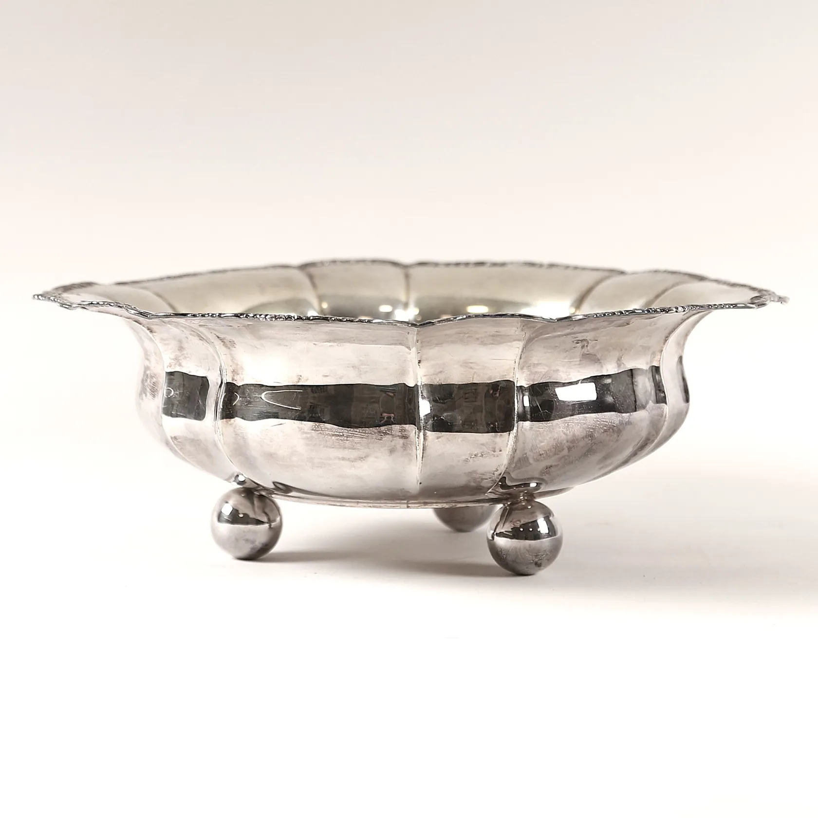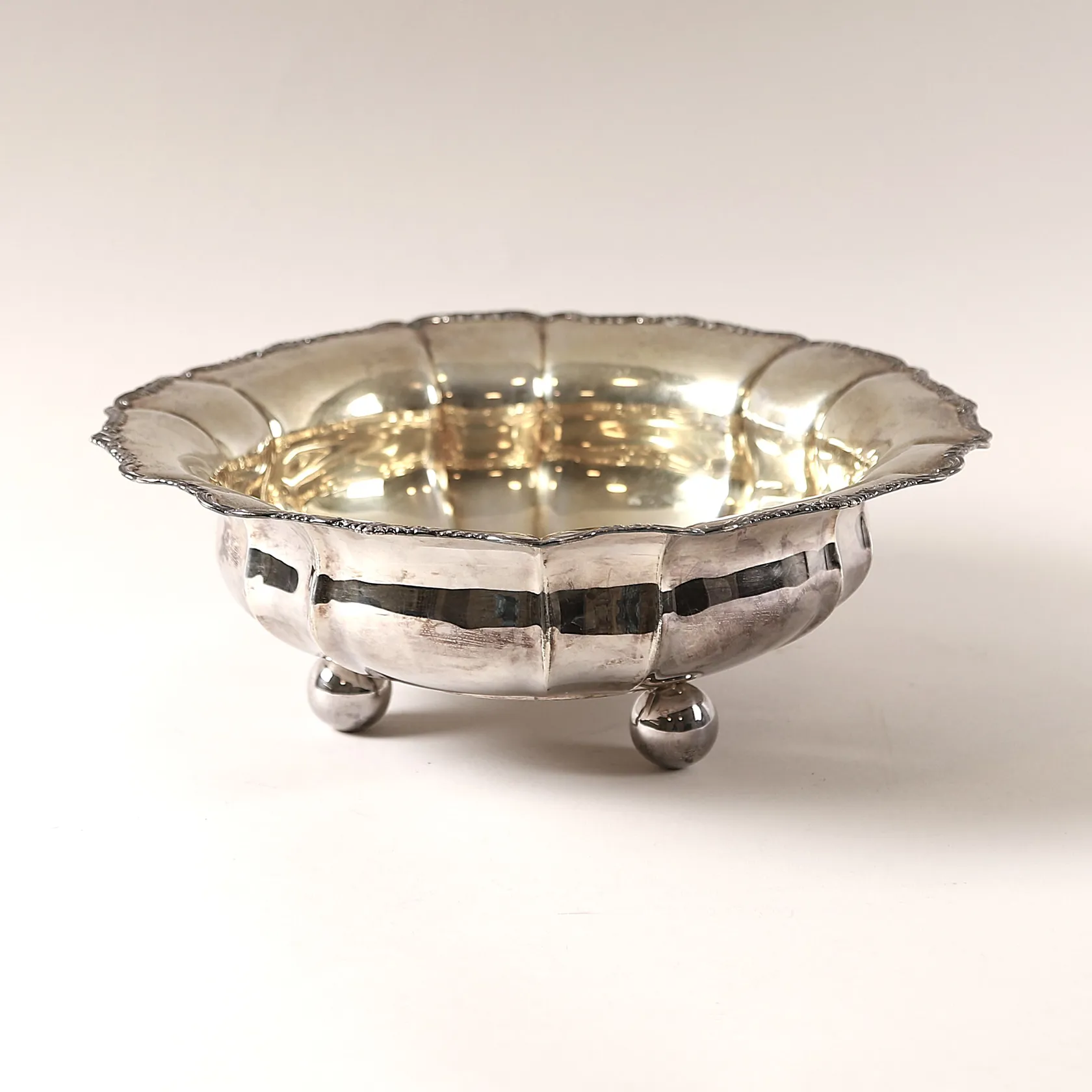 Skål, veckad form, invändigt förgylld, troligen finska stämplar, Ø28, höjd 10cm, graverad undertill, slitage, silver. Vikt: 475 g.