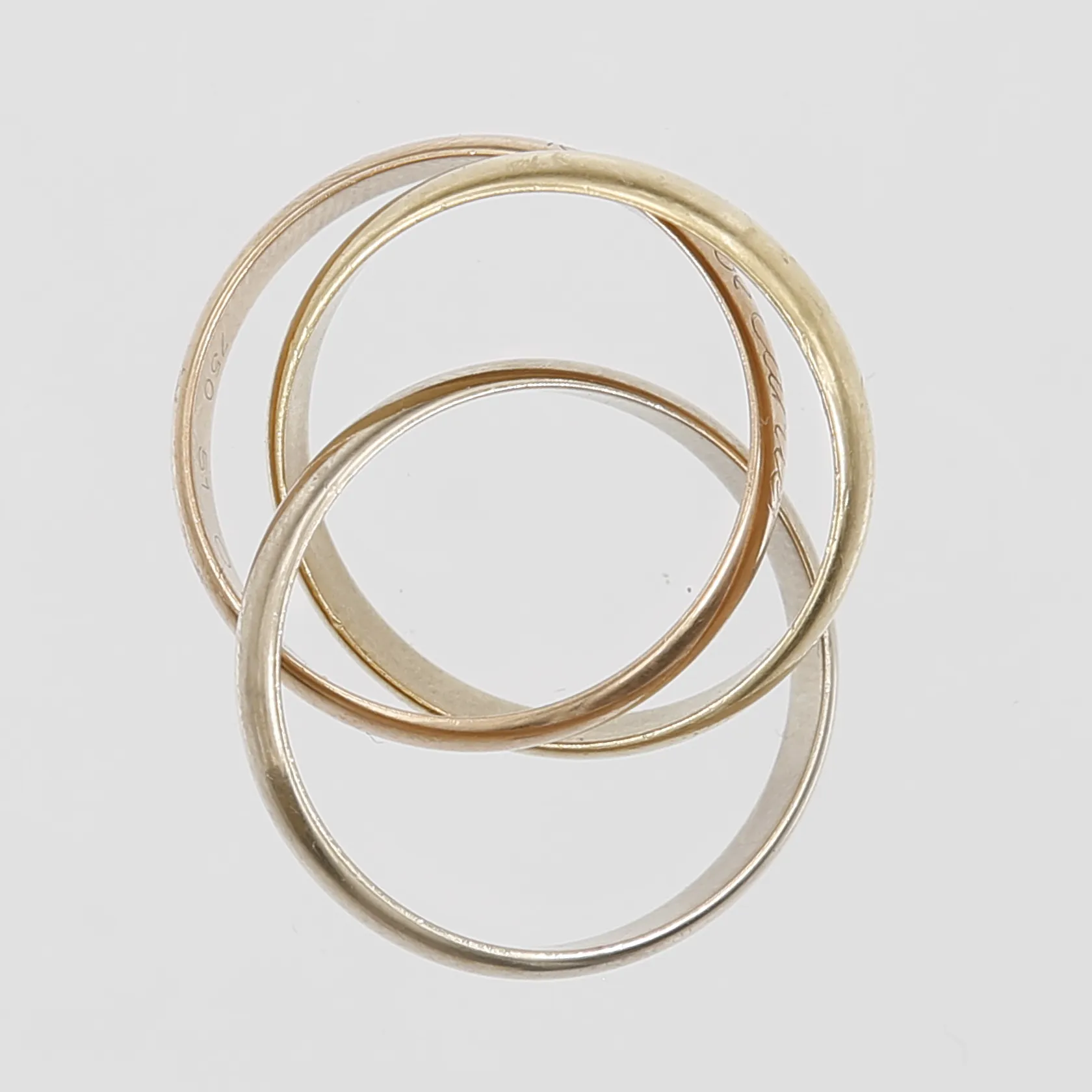 Ring Cartier Trinity "les must de Cartier", snr: O 8051 V, stl: 16¼ (51), 18K guld, vitguld samt roséguld, originalask Vikt: 7,2 g.