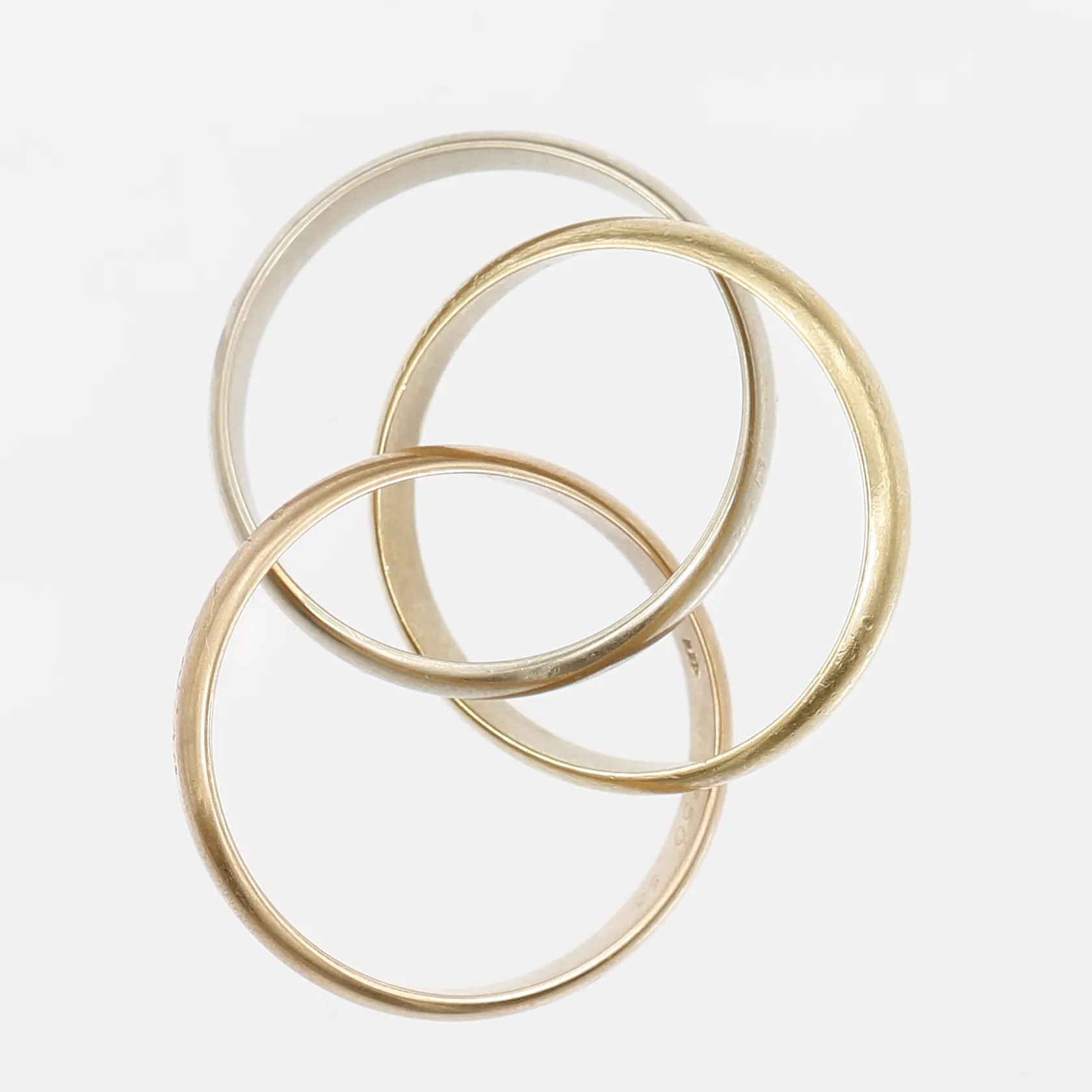 Ring, Cartier Trinity, "les must de Cartier", storlek: 17¾ (56), 1980-90-tal, 18K guld, vitguld samt roséguld i originalask samt kartong Vikt: 9 g.