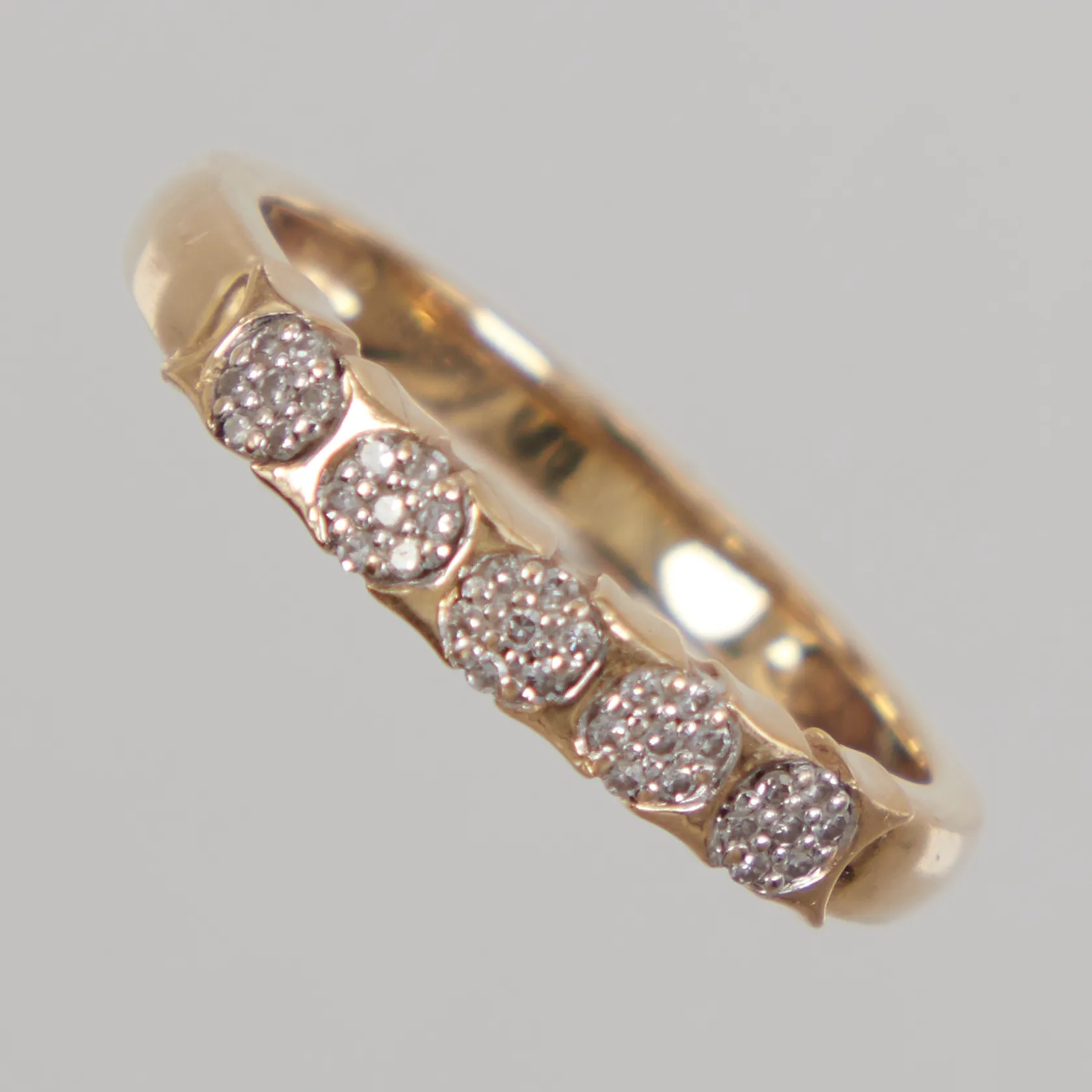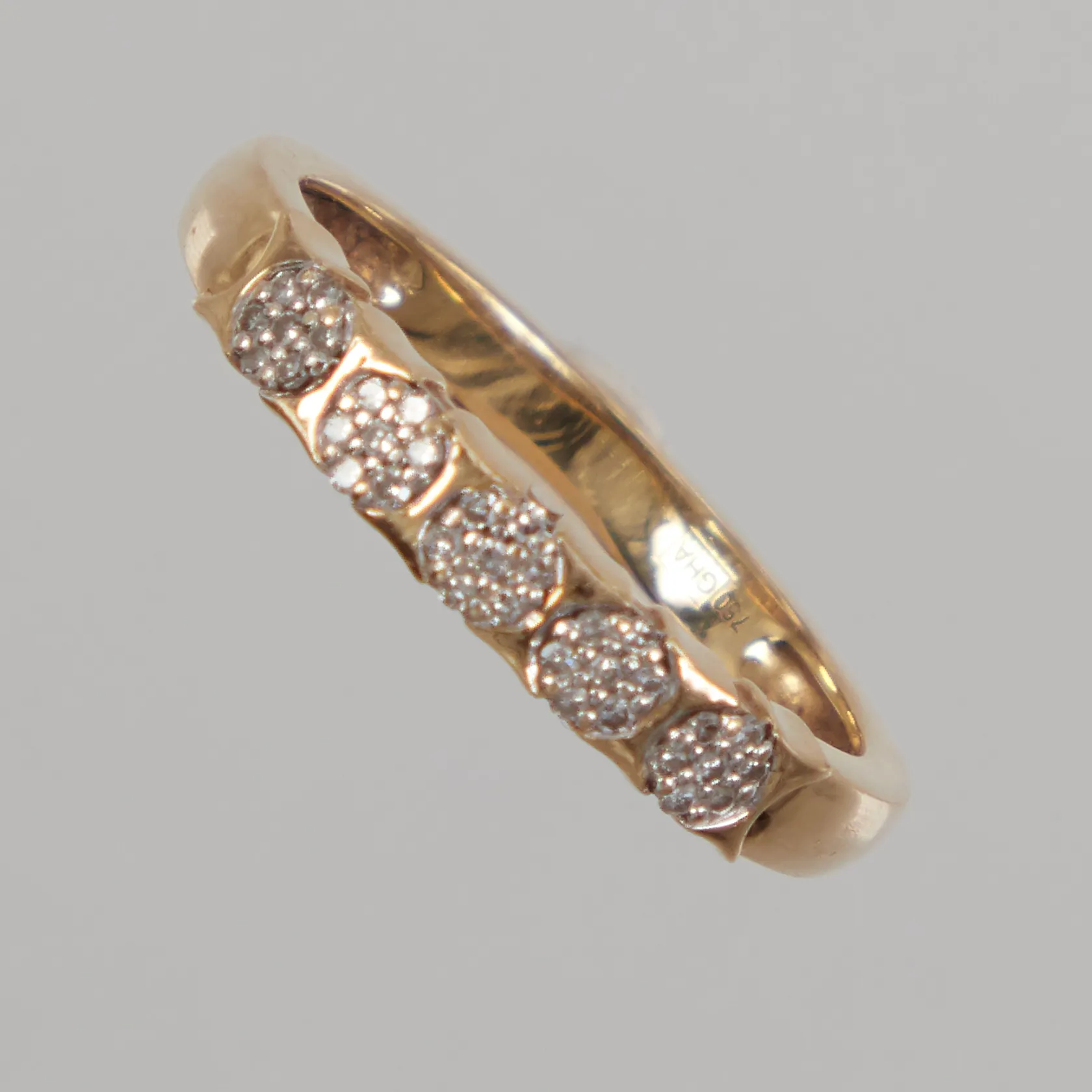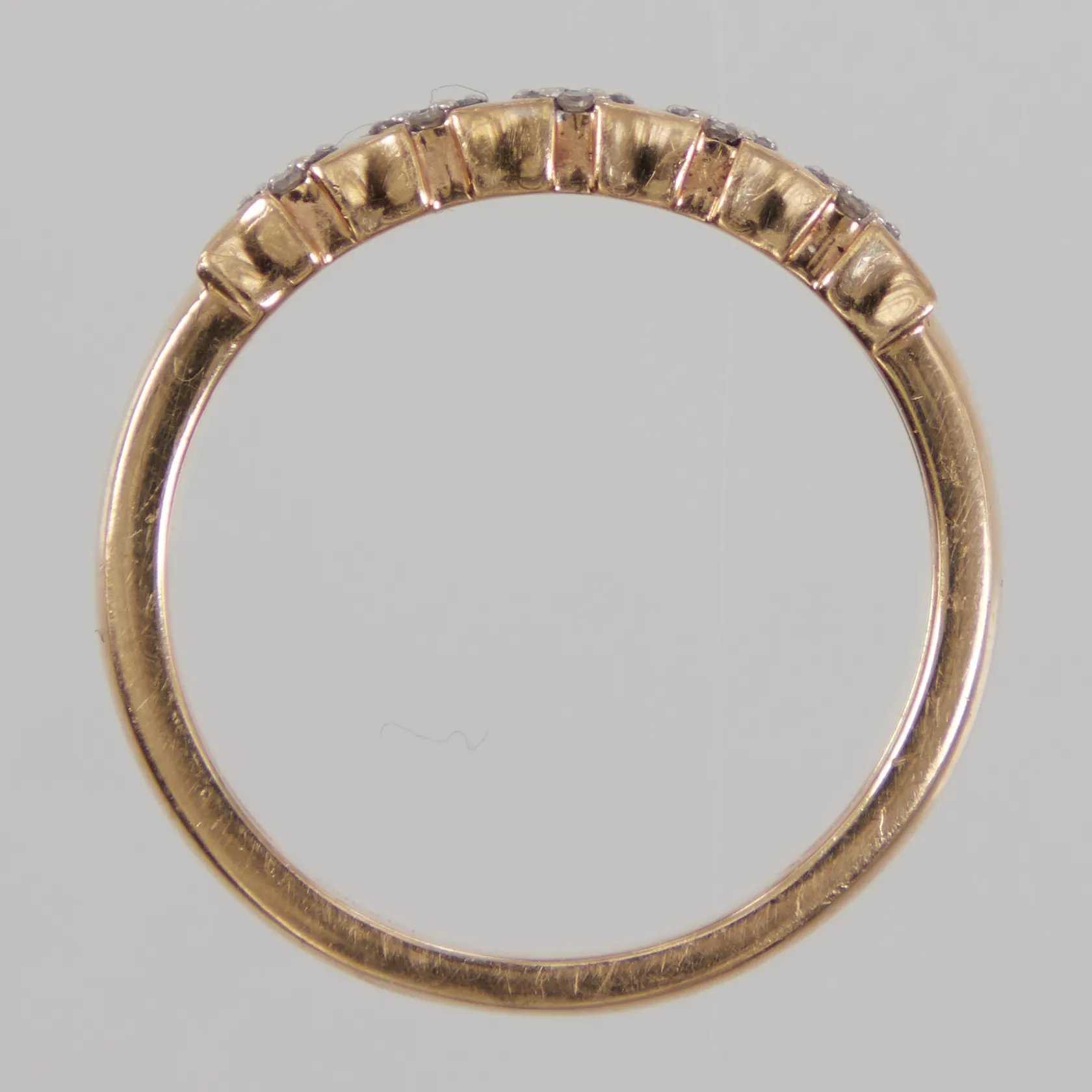 Ring med 8/8slipade diamanter 35x ca 0,005ct, stl 17½, bredd 3mm, gulguld, GHA 18K Vikt: 3 g.