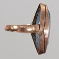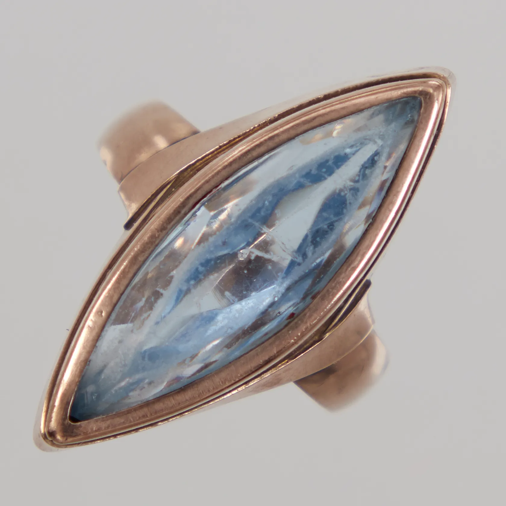 Ring med blå sten stl 18¼, bredd 2,8-28,7mm, nagg, repor, sliten sten, sten lös i fattning, 14K, Bruttovikt 5,1g.