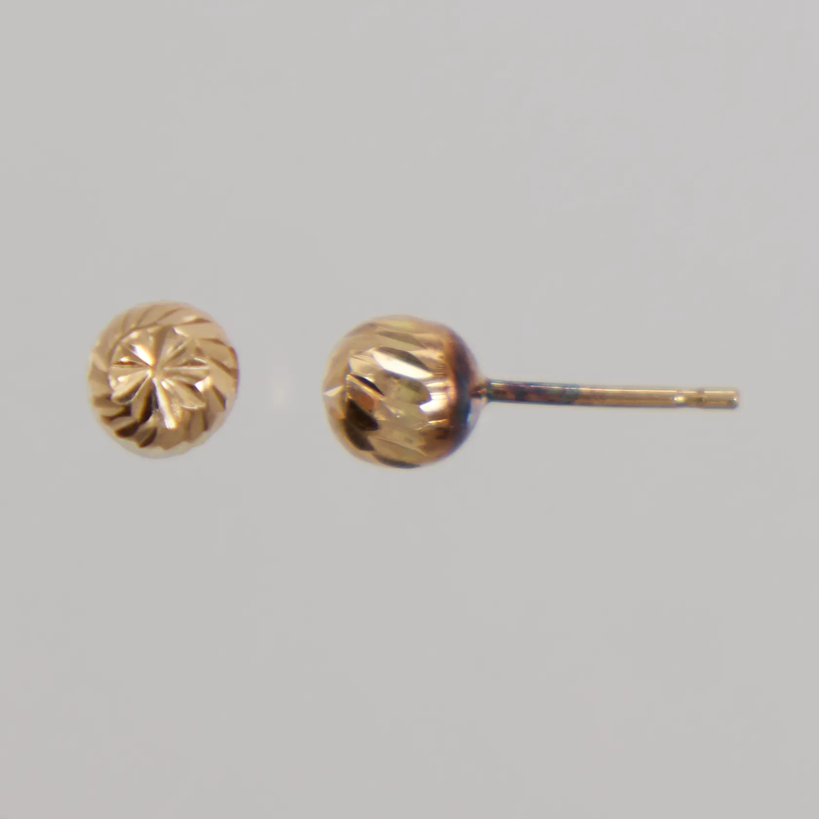 Ett par örhängen kulor med mönsterdekor, Ø 5mm, stift, snurrebussar saknas, 18K Vikt: 0,4 g.