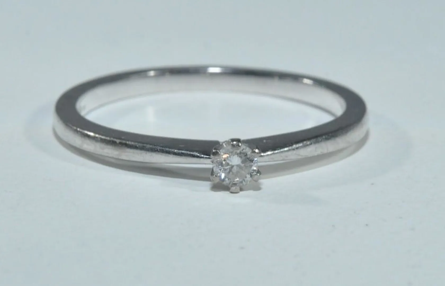 Diamantring 18k 3,1gr 1x0,10ct Guldfynd Ø18,93mm vitguld ref:L10075/1905-06 Vikt: 3,1 g.