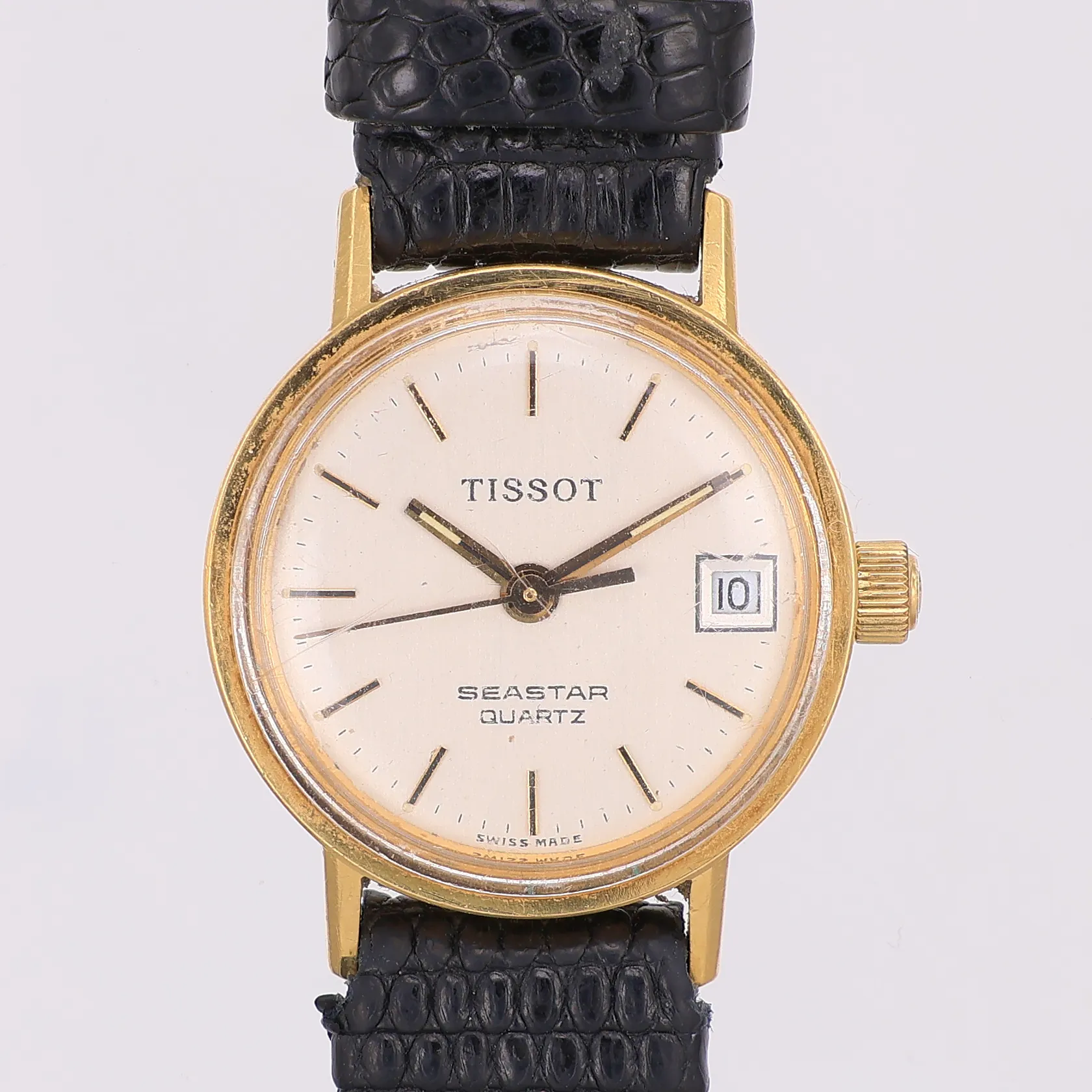 Damur Tissot Seastar Ø22,8mm 18K quartz, står still, gravyr, defekt, av, läderband