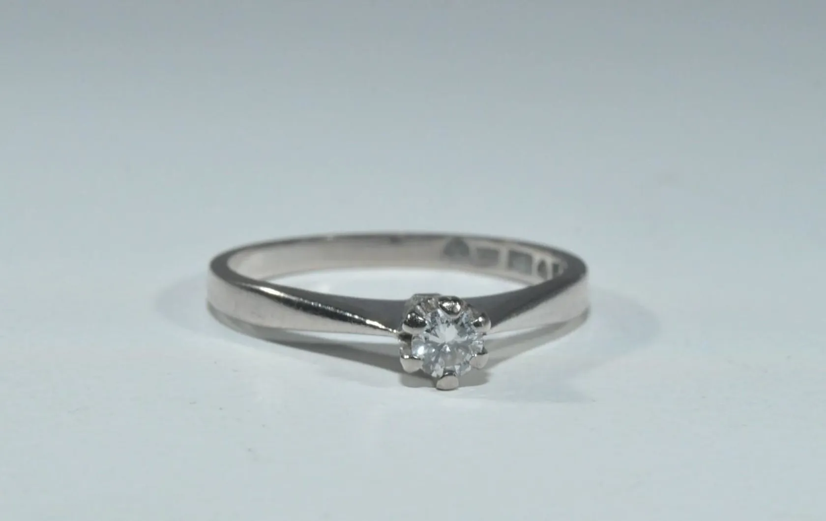 Diamantring 18k 0,14ct 2,6gr Ø17,20mm behov av omrodering ref:L9761:1/1912 Vikt: 2,6 g.
