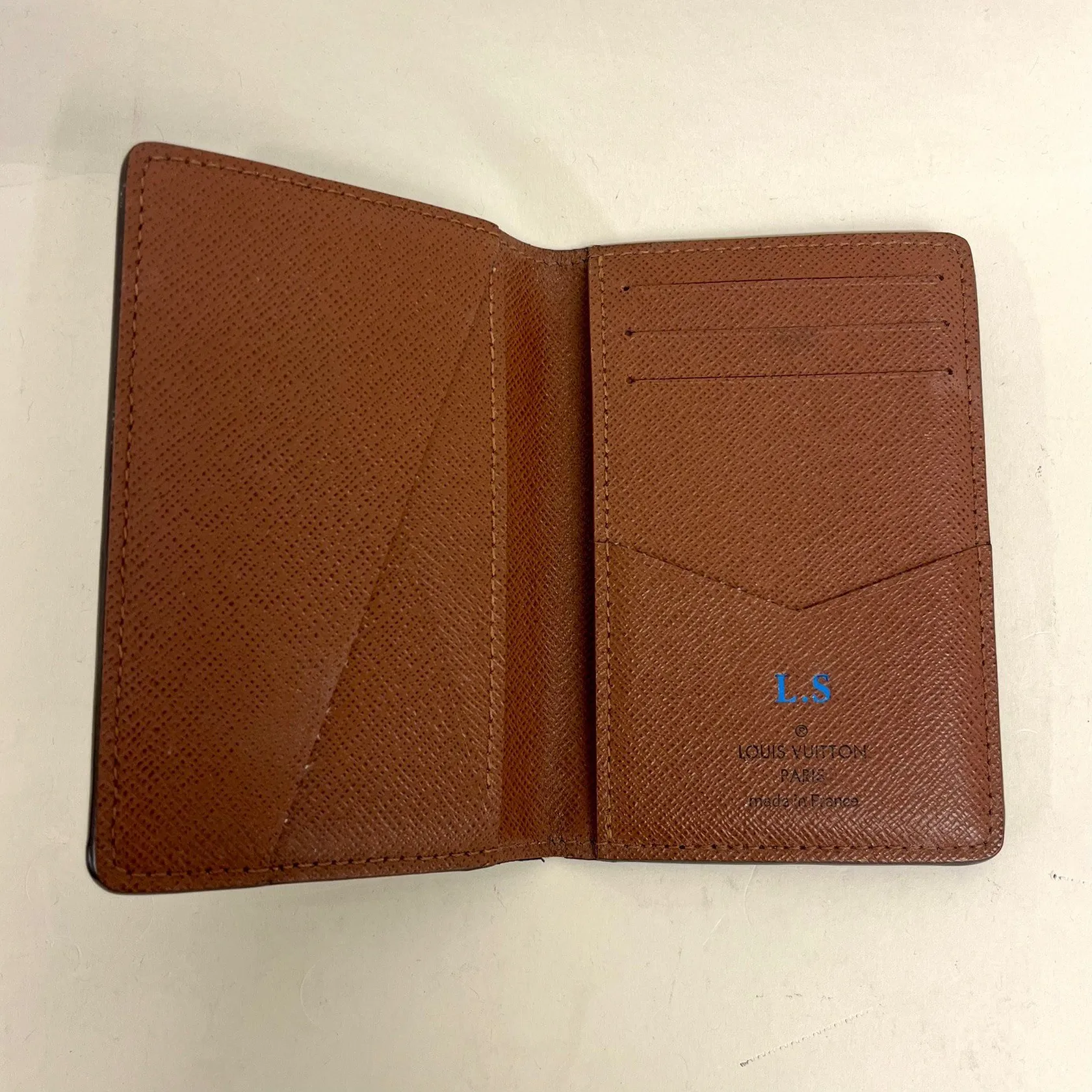 Plånbok, Louis Vuitton, Pocket organizer, M60502, monogram canvas, tryckta initialer LS, skadad, sprickor i lädret, kvitto 2021, dustbag, box