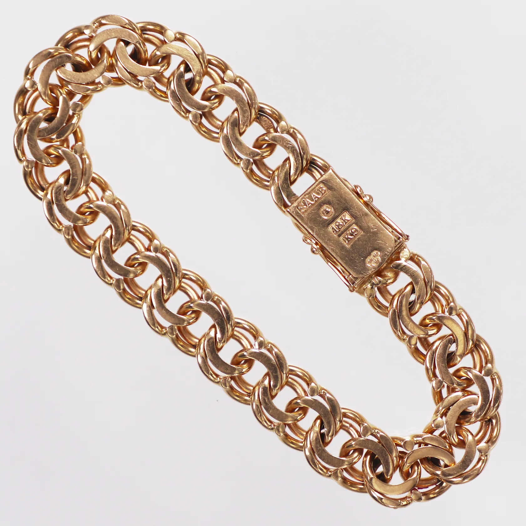 Armband Bismarck, längd 19cm, bredd 10,6mm, Stockholms Ädelsmide AB, år 1960, 18K Vikt: 41,5 g.