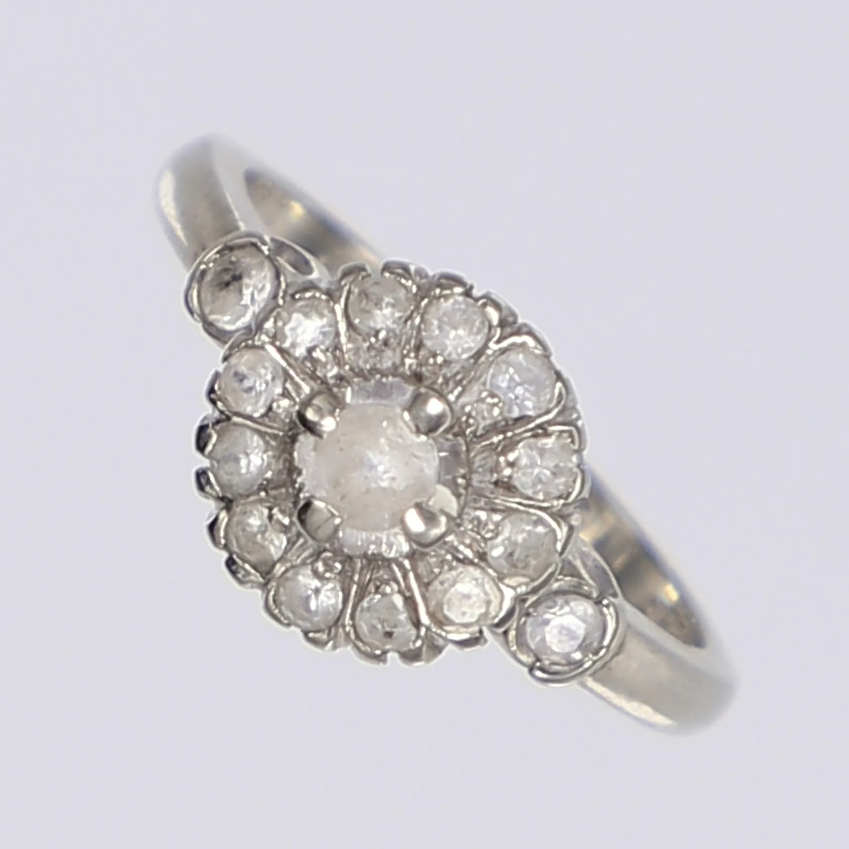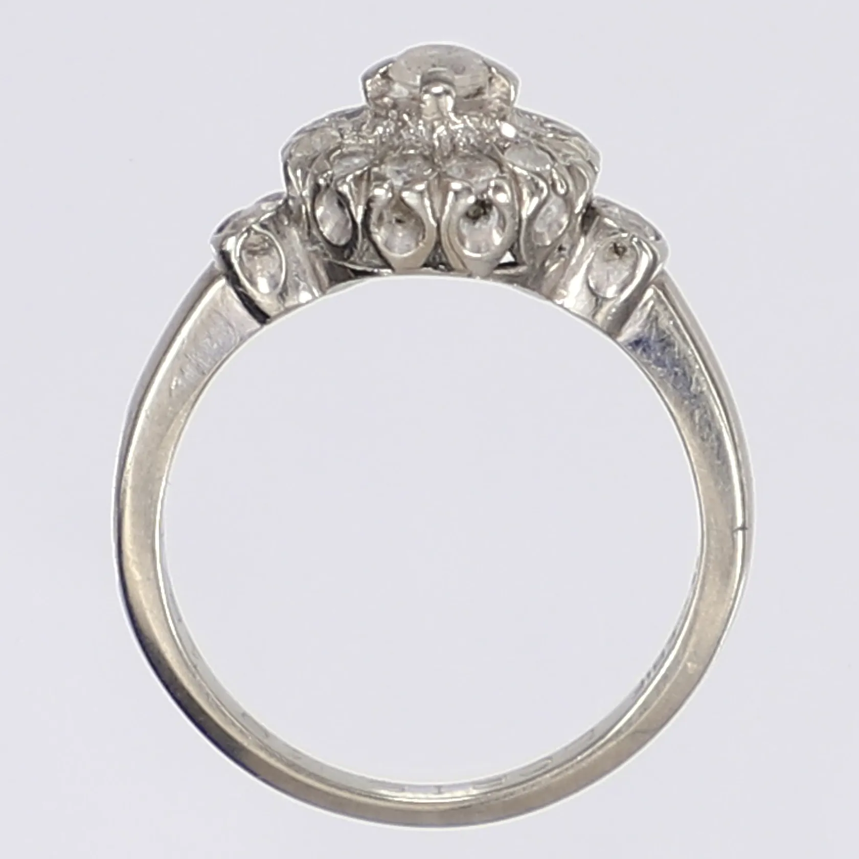 Ring med vita stenar stl 16, bredd 1,5-9mm, gravyr, vitguld 18K Bruttovikt: 3,6g Vikt: 3,6 g.