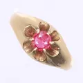 Ring med röd sten stl 18¼ bredd 3-10mm 14K Vikt: 4,2 g.
