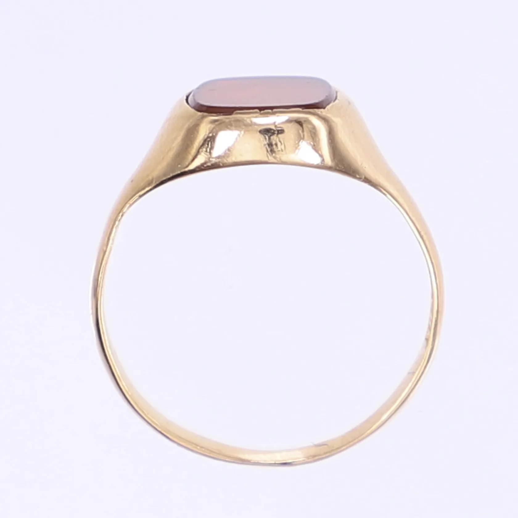 Ring med brun sten stl 18, bredd 2-11mm, gravyr, 18K Bruttovikt: 3,4g Vikt: 3,4 g.