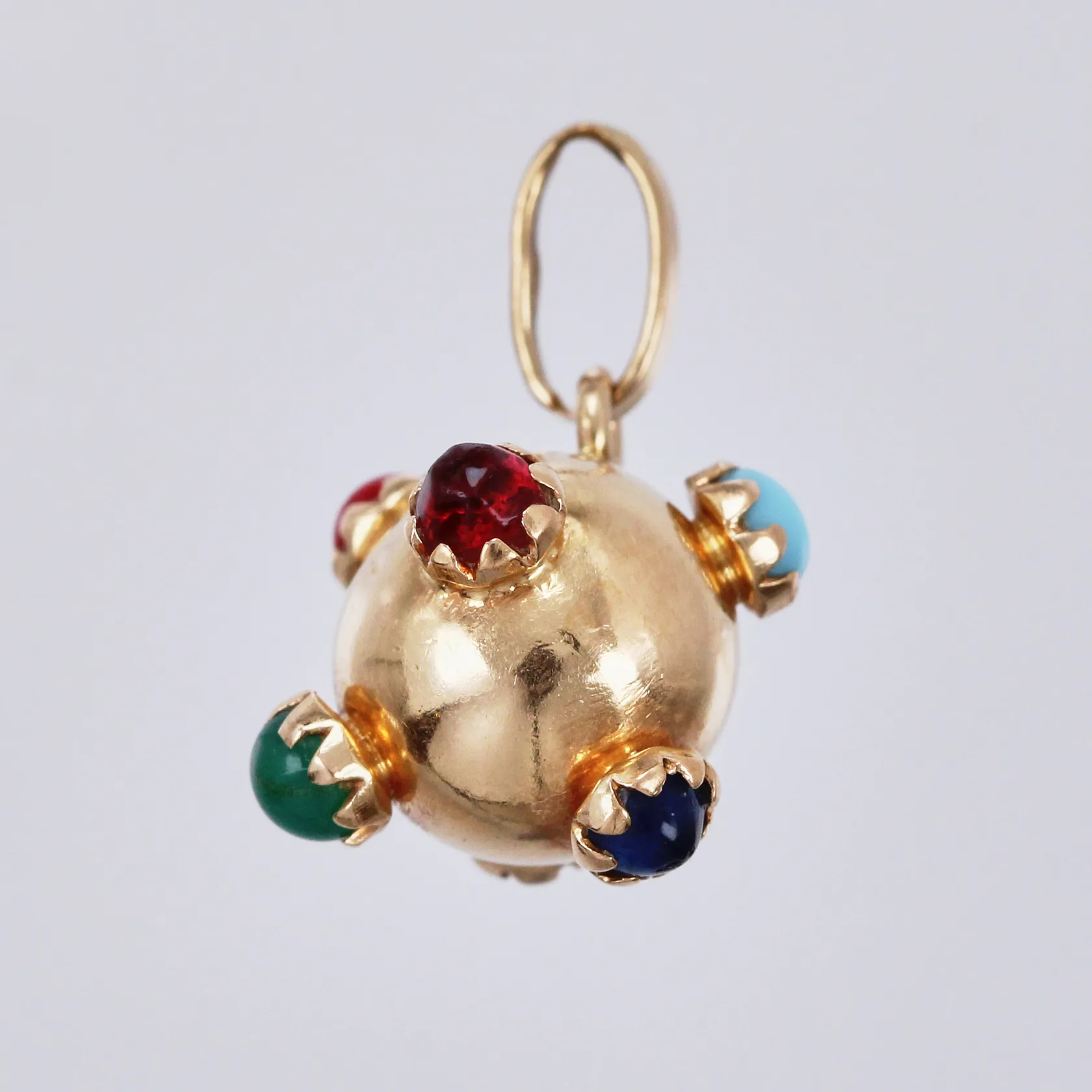 Hänge med färgade stenar, längd: ca 1,8cm, Ø ca 10mm, 18K Vikt: 1,5 g.