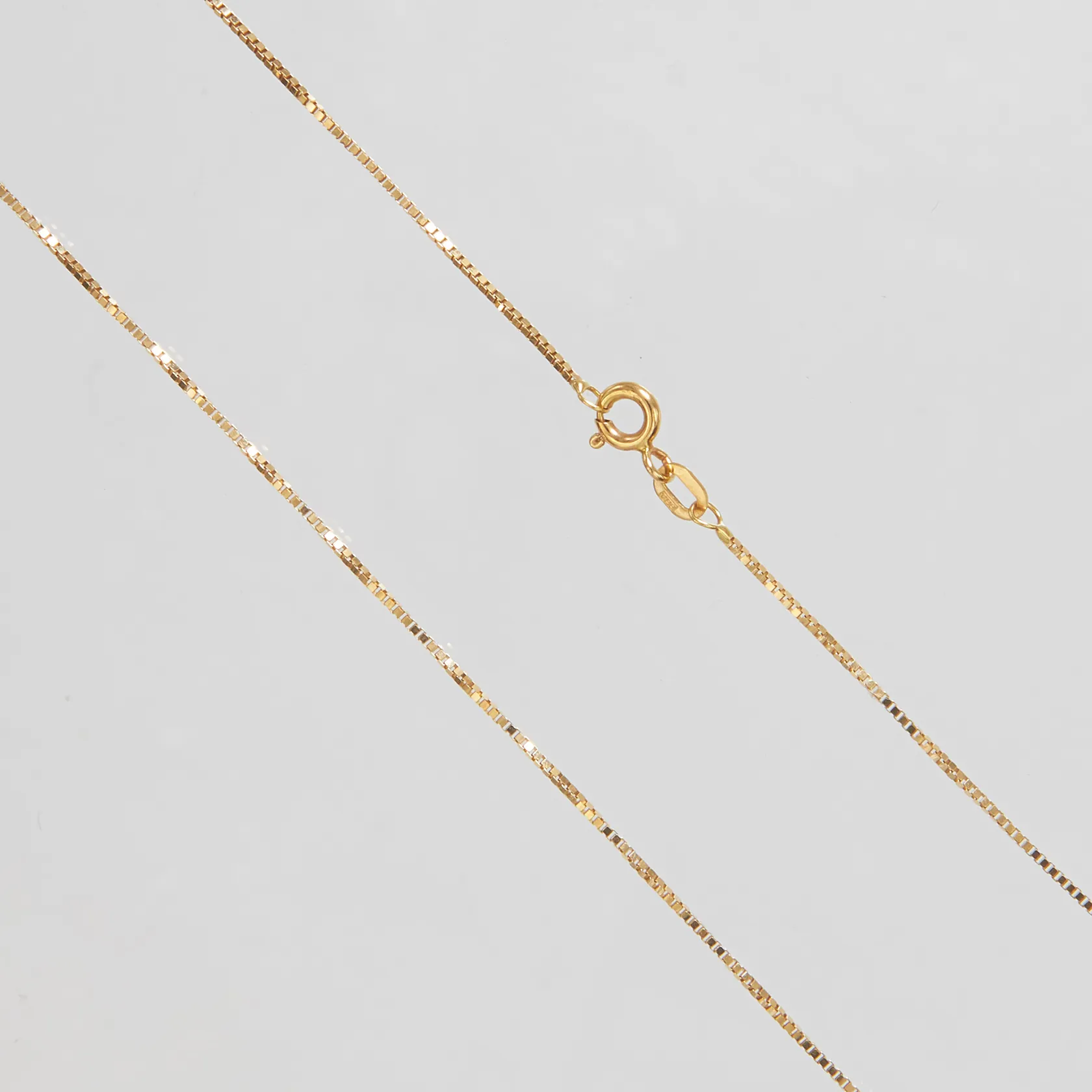 Kedja Venezia, längd ca 41,8cm, bredd 0,8mm, GHA, ojämnheter, 18K Vikt: 2,3 g.