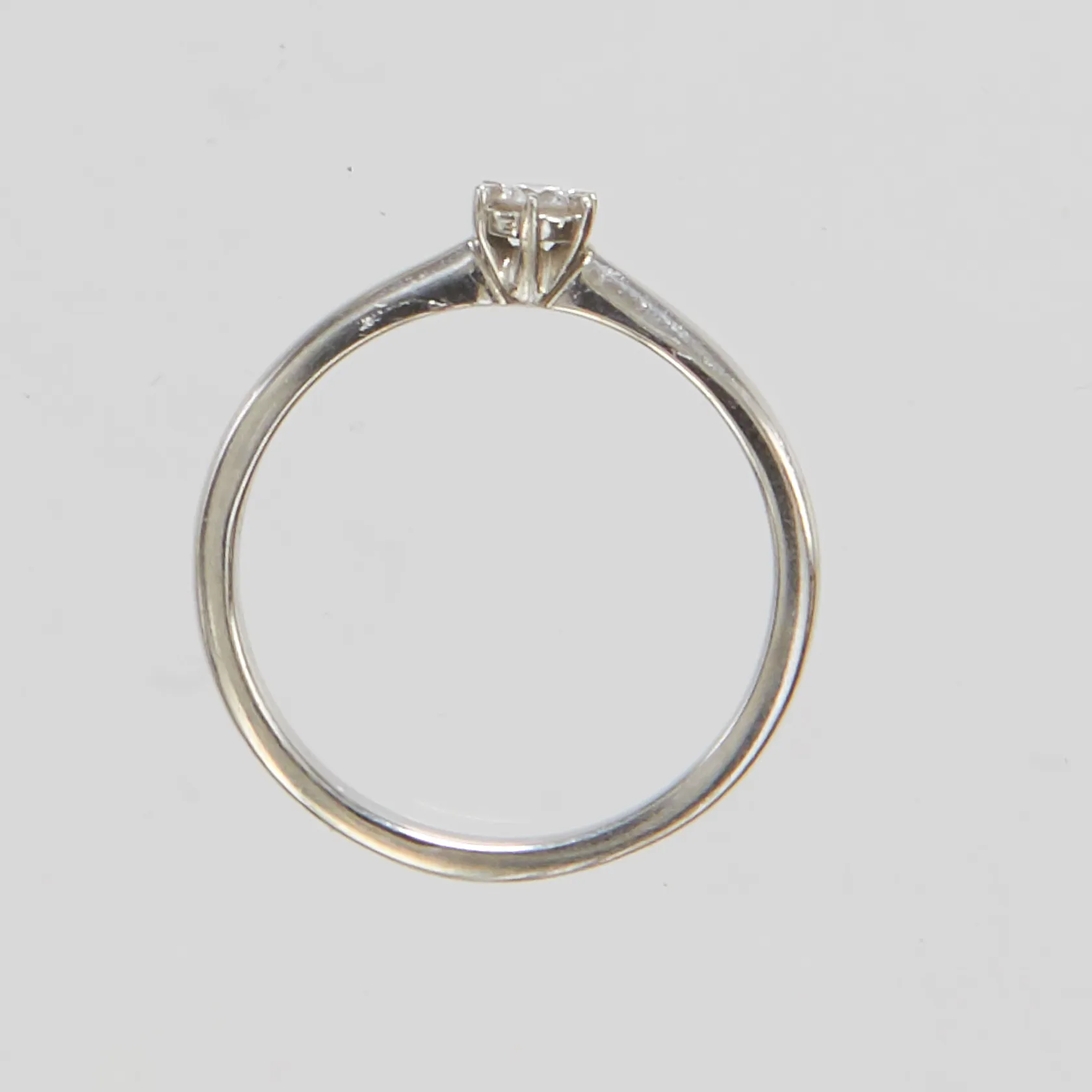 Ring med diamant 1 x ca 0,08ct, stl17, bredd 1,5-4mm, GHA, vitguld, 18K Vikt: 2,5 g.