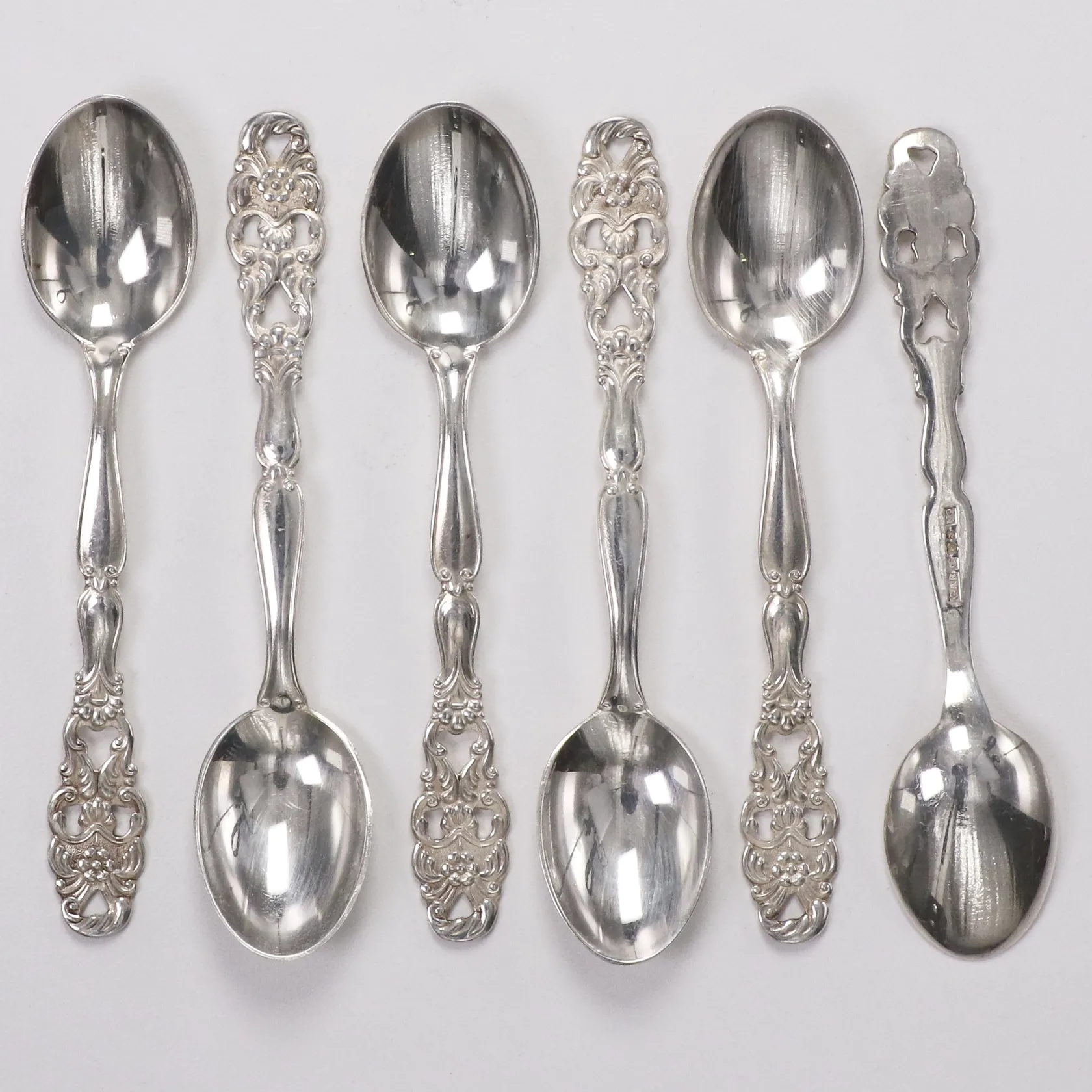 6 moccaskedar, 9,5cm, GAB år 1970, 830/1000 silver Vikt: 50,9 g.