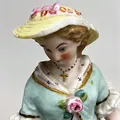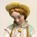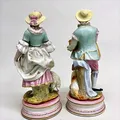 Ett par figuriner, kvinna och man, höjd 29cm, Letu & Mauger, Frankrike (1854-1893), L&M 415, handmålat biskviporslin, flertal nagg, delar saknas, lagningar Skickas med postpaket.