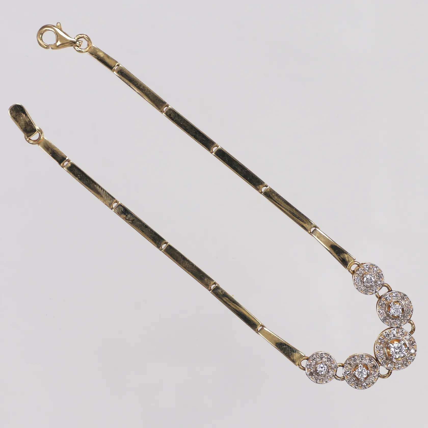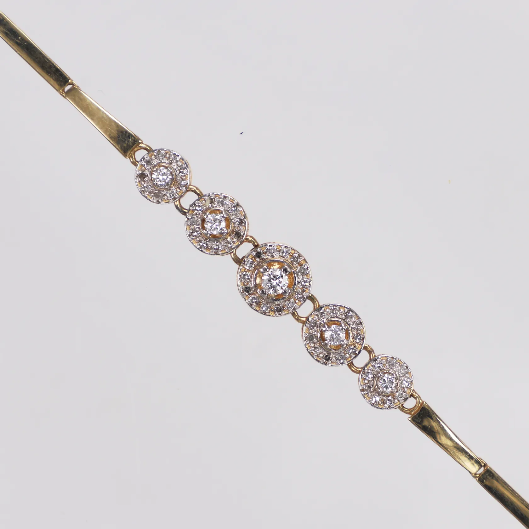 Armband diamanter 1 x ca0,08ct, 2 x ca0,04ct, 2 x ca0,03ct, 50 x ca0,01ct, 19cm, bredd 2,2-8mm, 14K Vikt: 9,4 g.