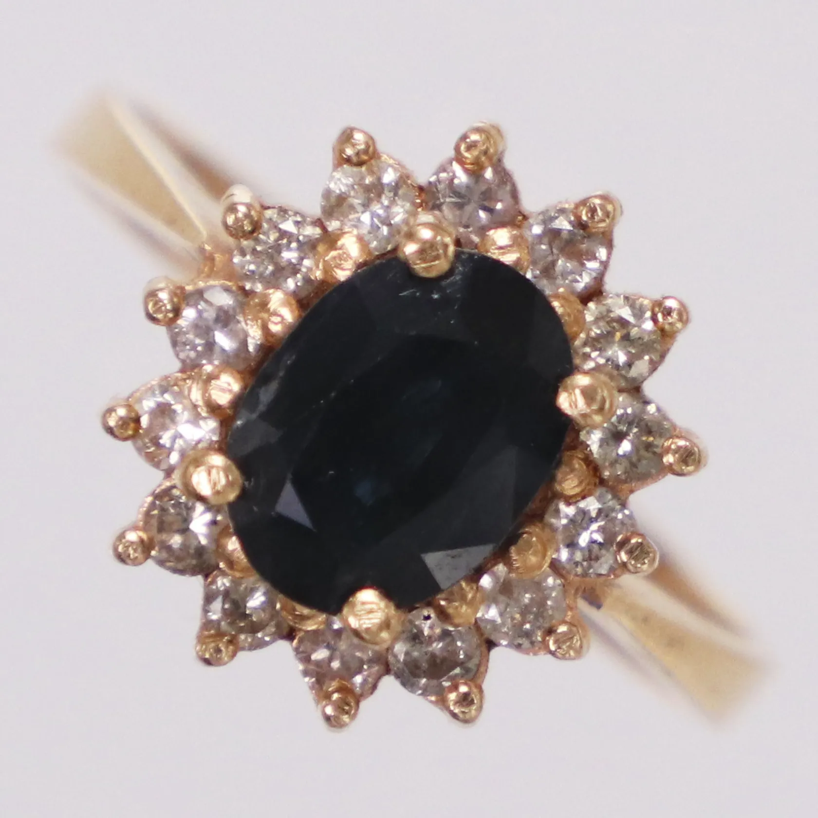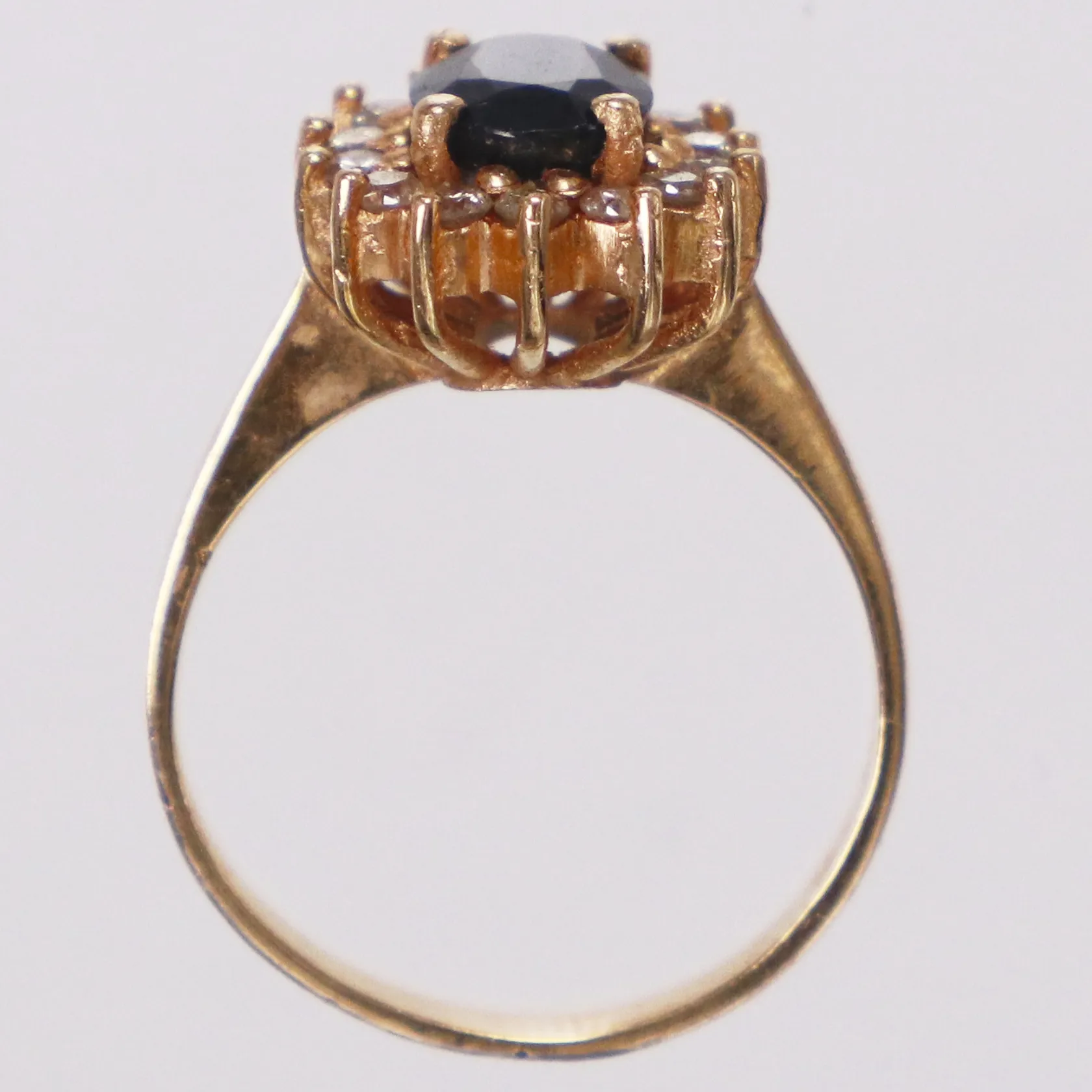 Ring diamanter 14 x ca0,02ct, safir, stl 16¾, bredd 2,6-12,5mm, repig skena, 18K Vikt: 4,1 g.