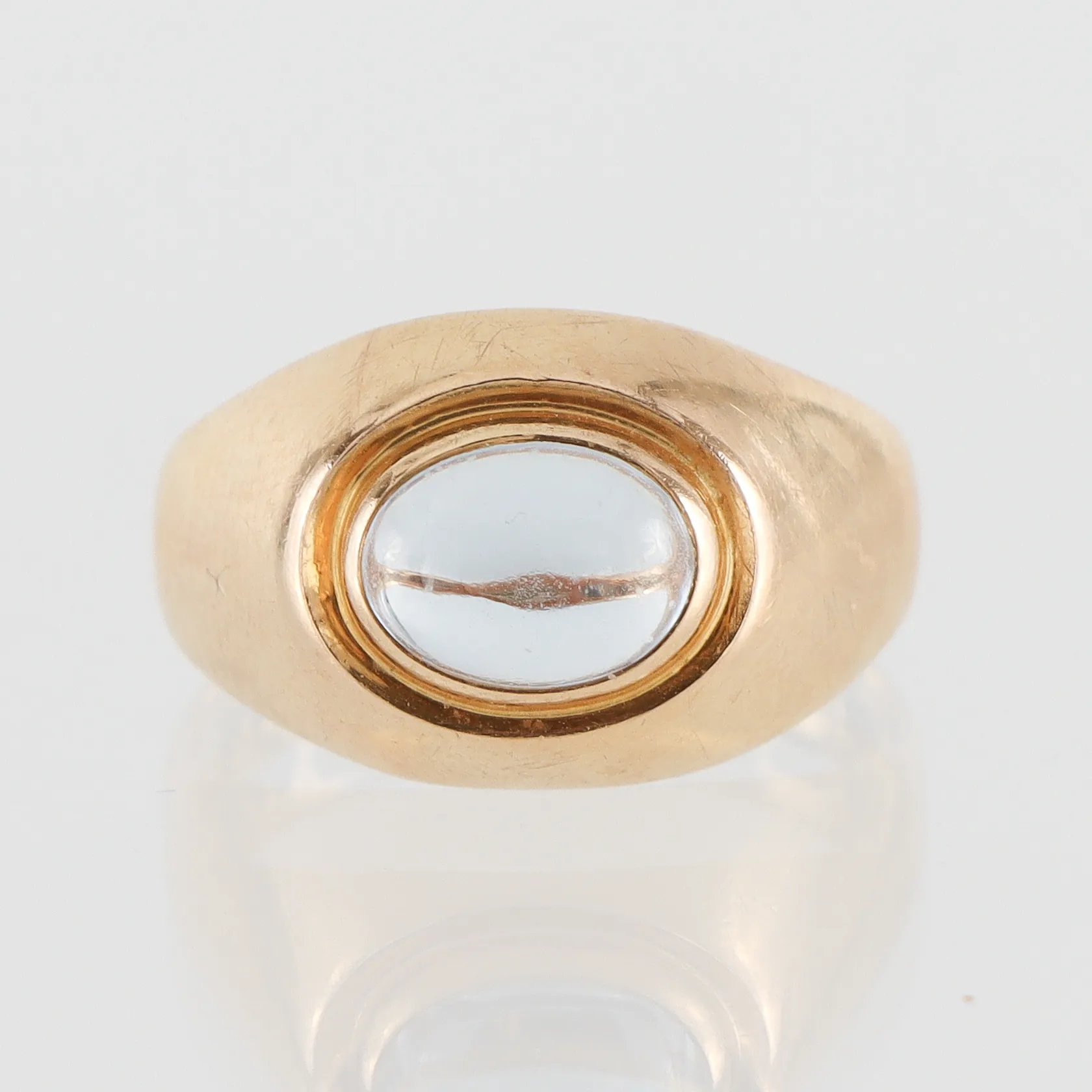 Ring med sten, storlek 16 ½ mm, bredd 3.2-11.2 mm, 18k. Vikt: 2,8 g.