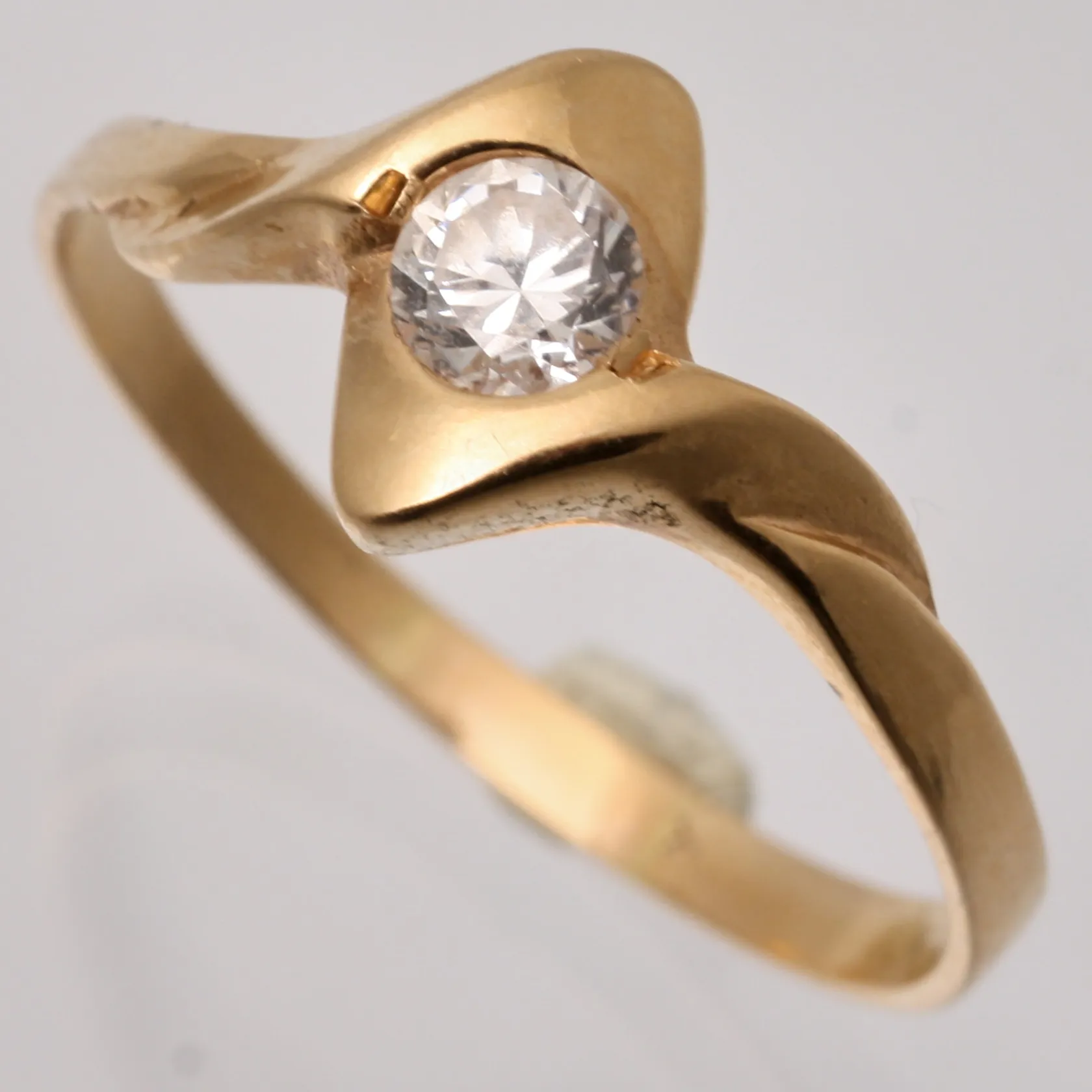 Ring i 18K guld, stl 18¾, bredd 1,9-9,1mm, 1st vit sten, mått Ø4mm, tillverkad av Bronsil AB, vikt 2,26g. Vikt: 2,3 g.