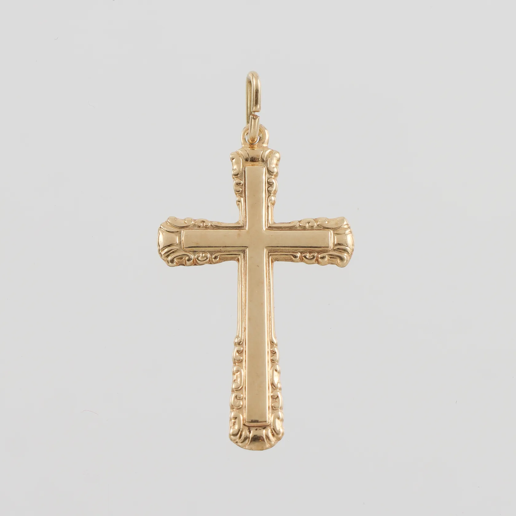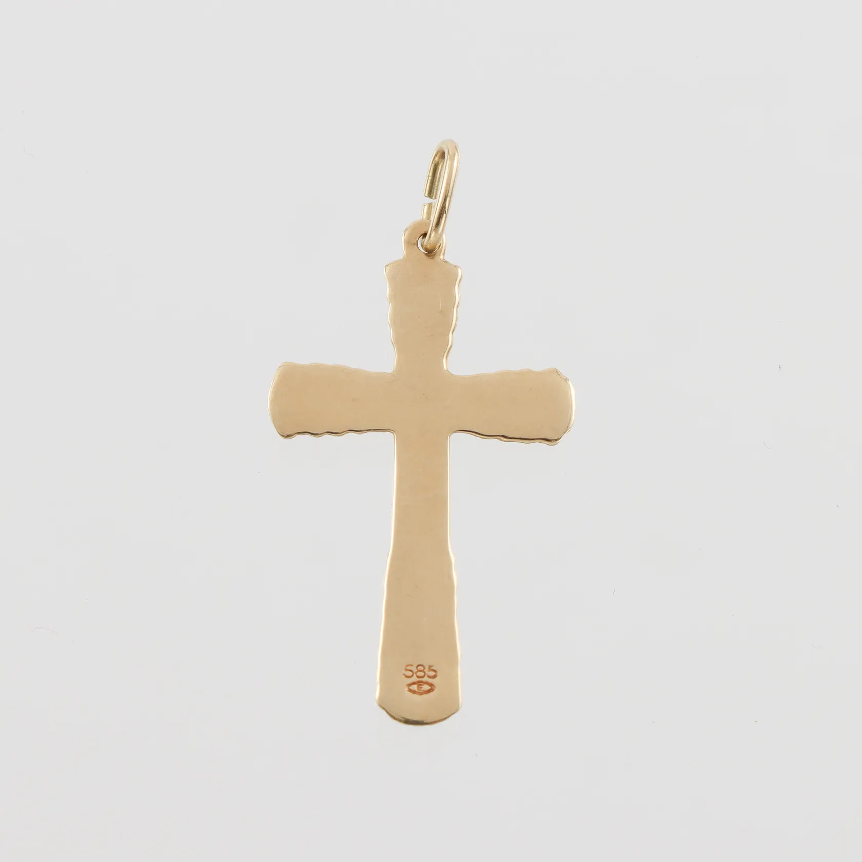 Hänge Kors, höjd ca 26 mm, 14k. Vikt: 1,4 g.
