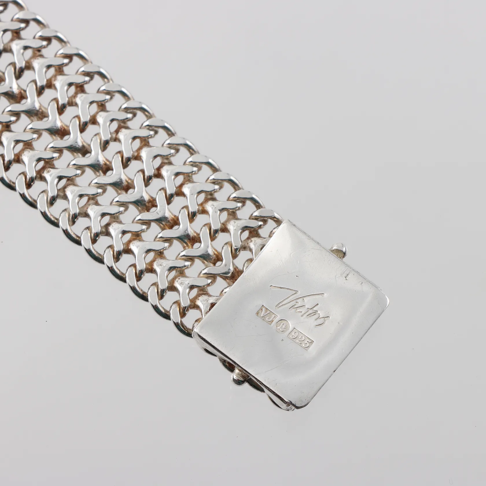 Armband X-länk, Victor Janson Lindesberg, längd ca 18.5 cm, bredd 18.5 mm, silver. Vikt: 38 g.