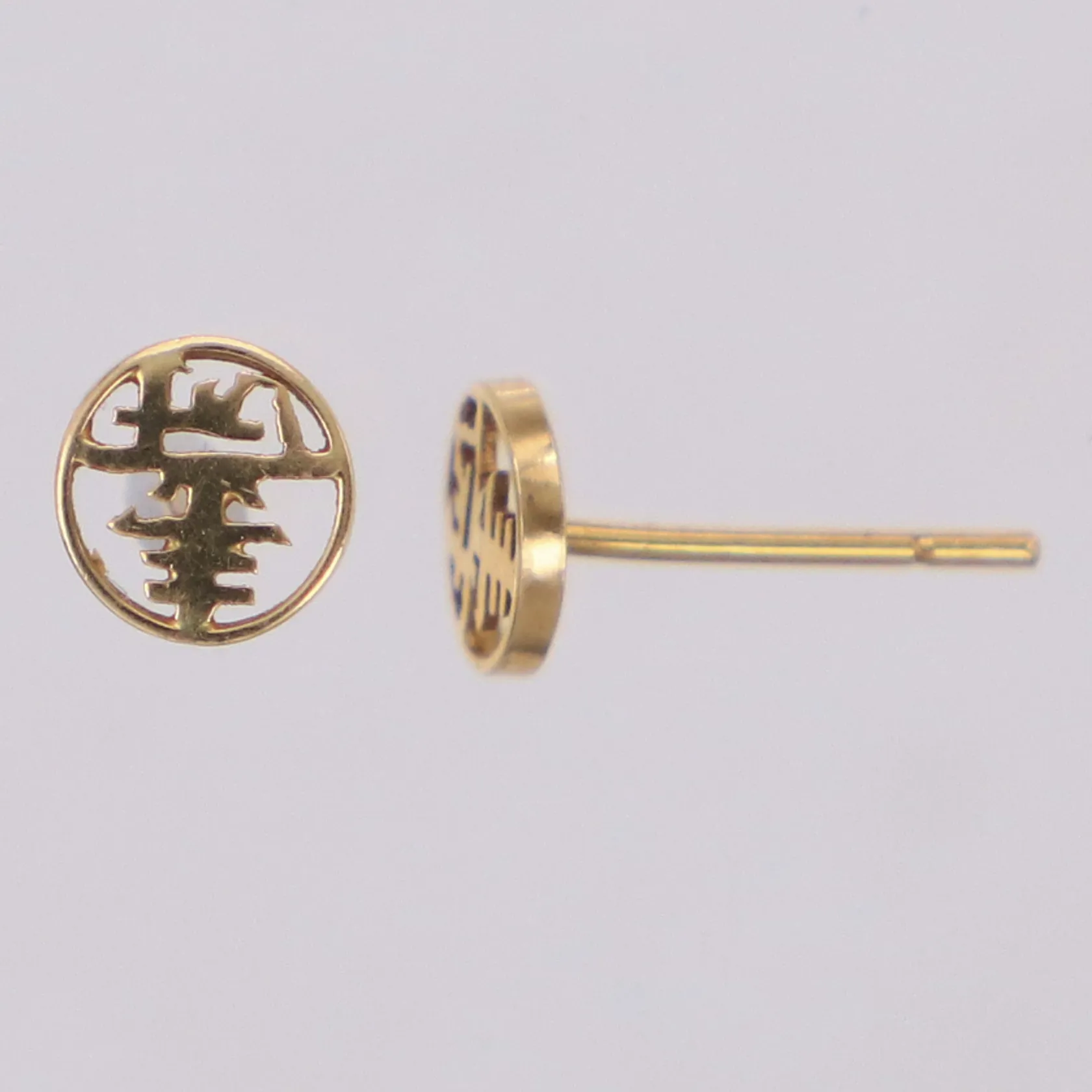 Ett par örhängen kinesiska tecken, ca Ø6mm, ostämplat, stoppers i plast, 14K Vikt: 0,5 g.