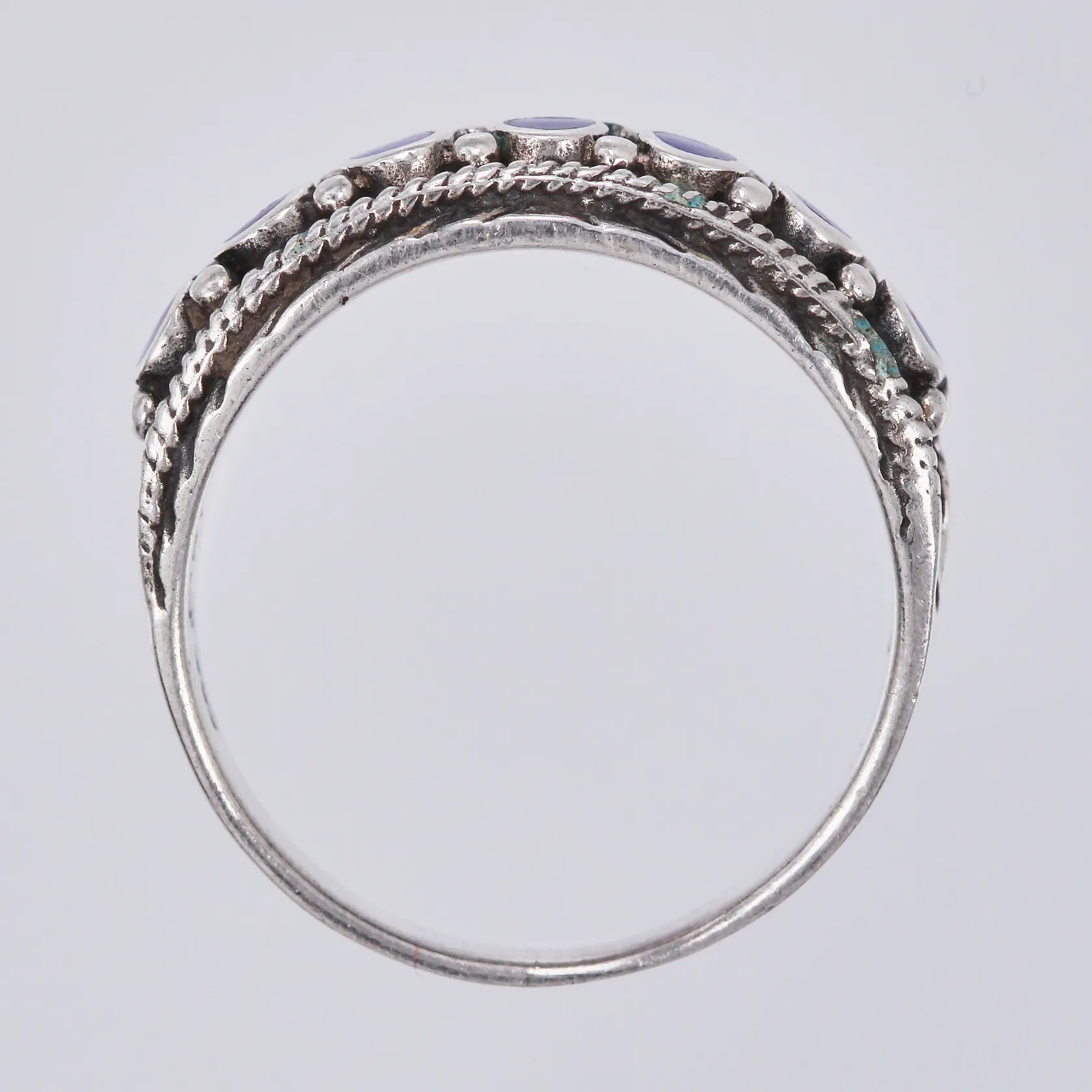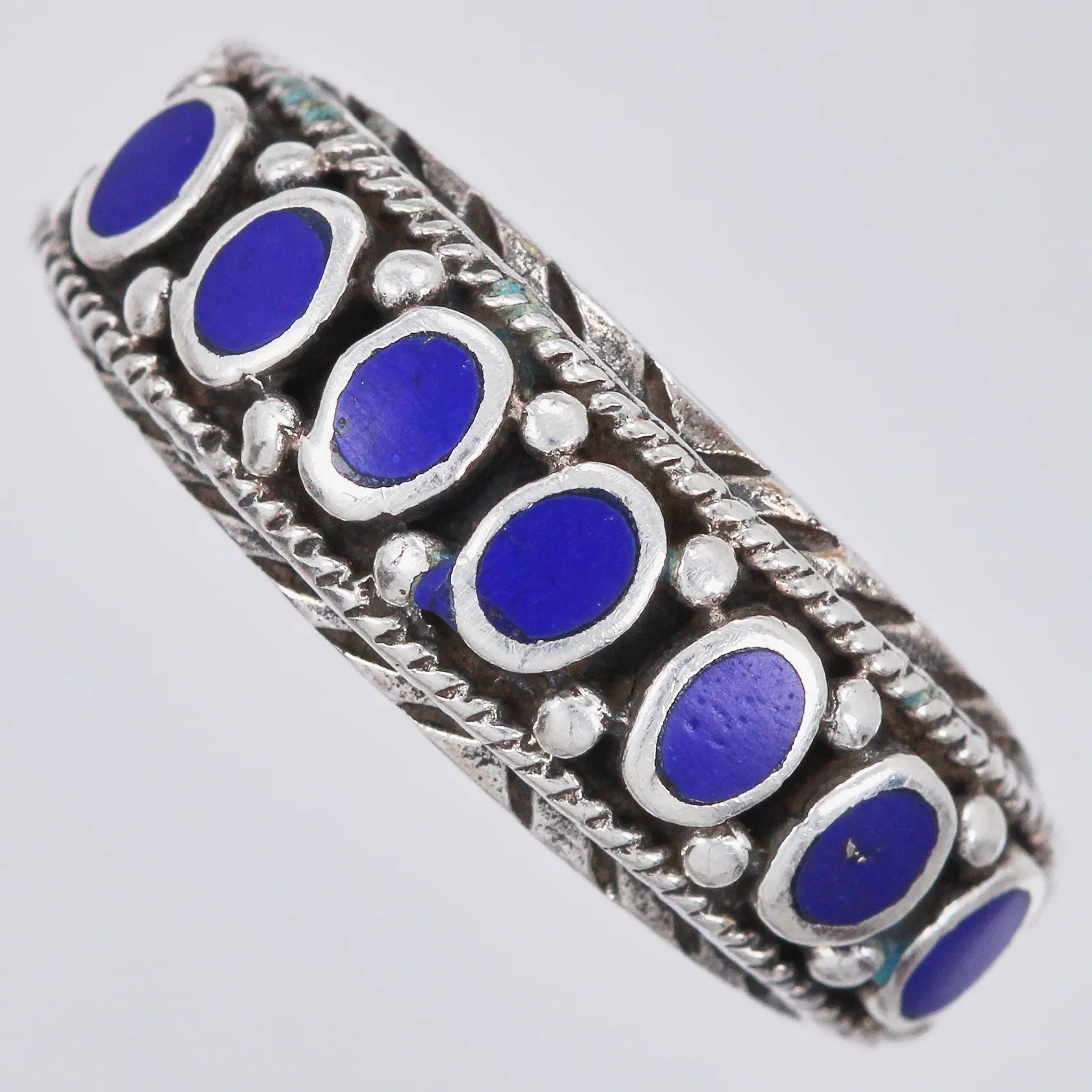 Ring med Lapis lazuli, stl: 18, bredd ca 3-7mm, 925/1000 silver Vikt: 4 g.
