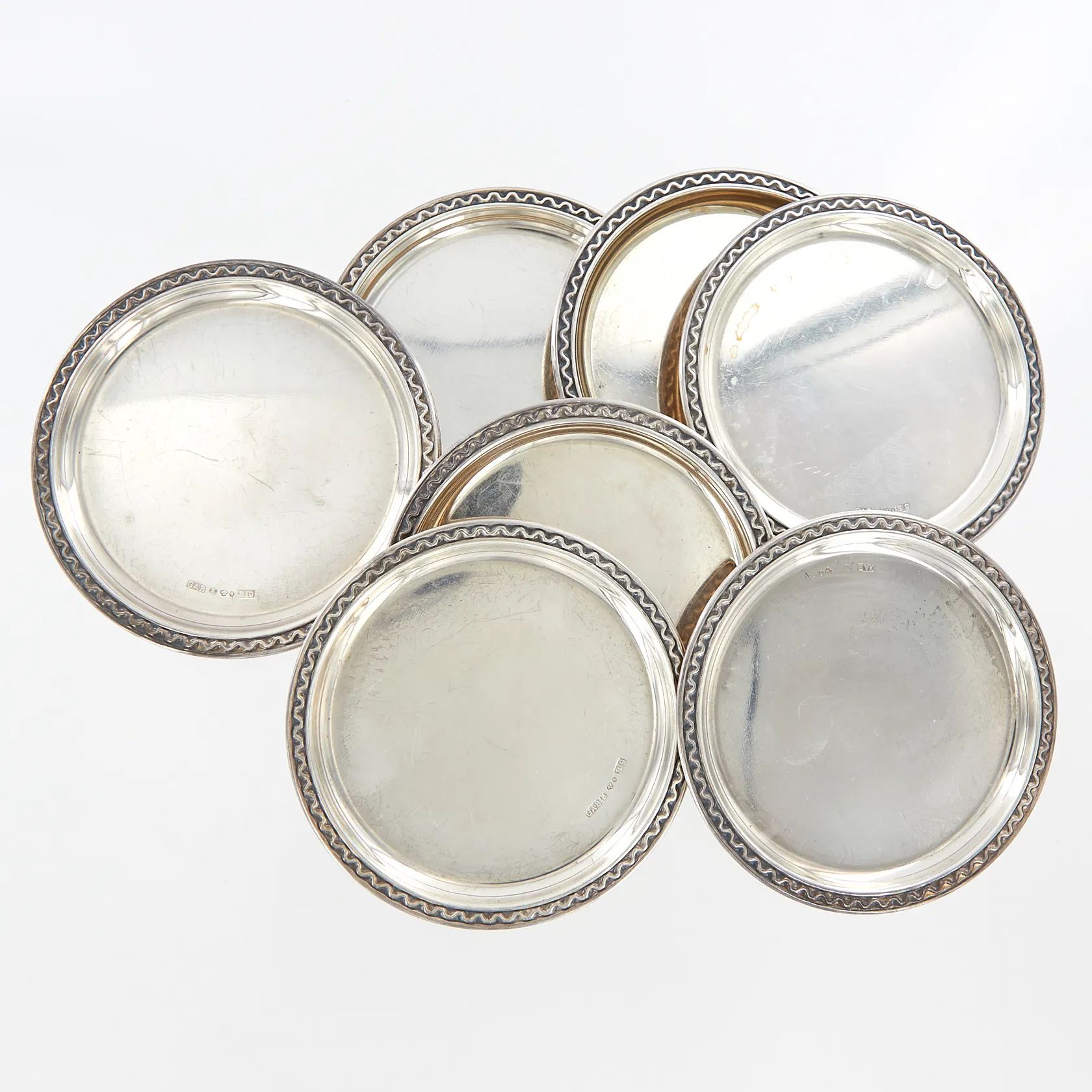 8 Glasunderlägg, Ø 7,5cm, GAB, 830/1000 Silver Vikt: 139,8 g.