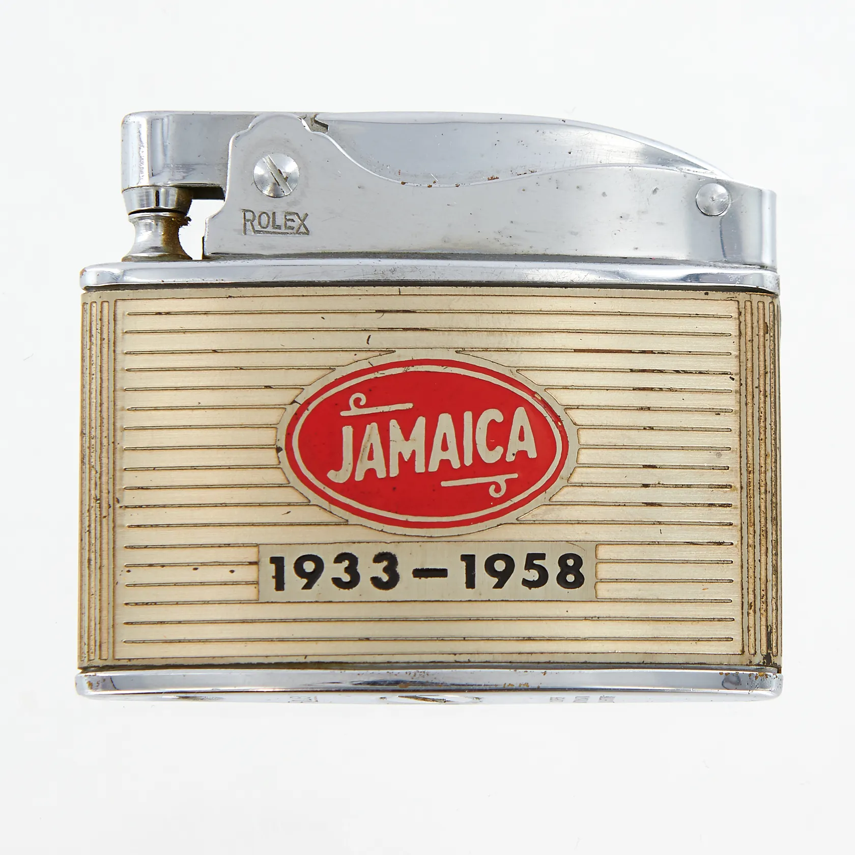 Tändare Rolex Super Automatic Lighter, reklamutgåva för Skandinaviska Bananimporten 25 år 1933-1958, Jamaica, med etui märkt Ronson, ej fuinktionstestad.