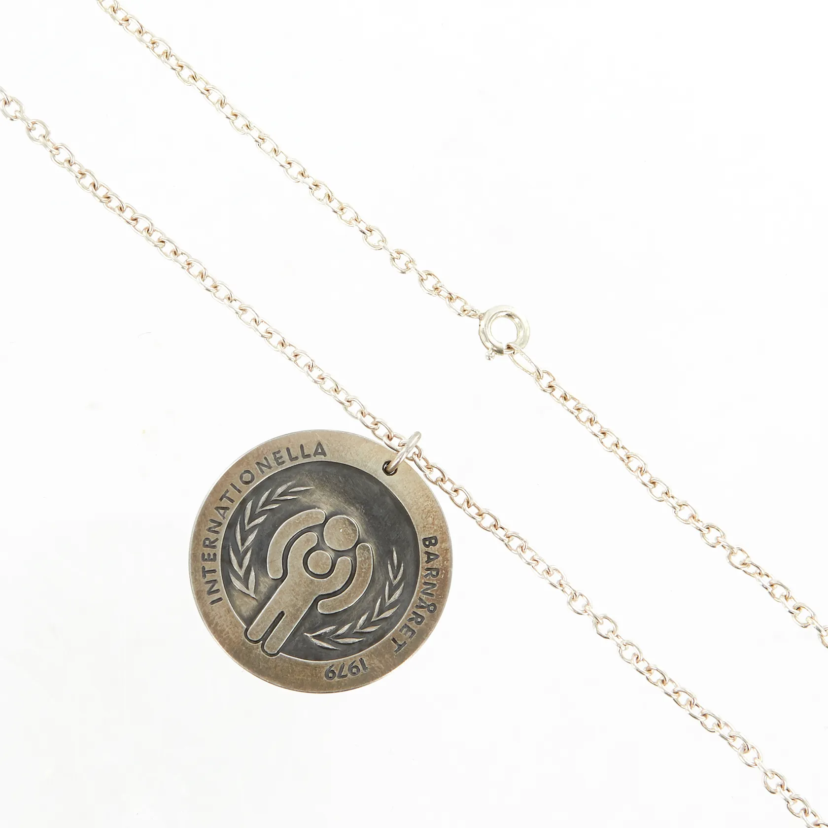 Kedja Ankar 60cm bredd:2mm, Hänge Ø31mm, Internationella barnåret 1979, Sterling silver 925/1000 Vikt: 22,7 g.