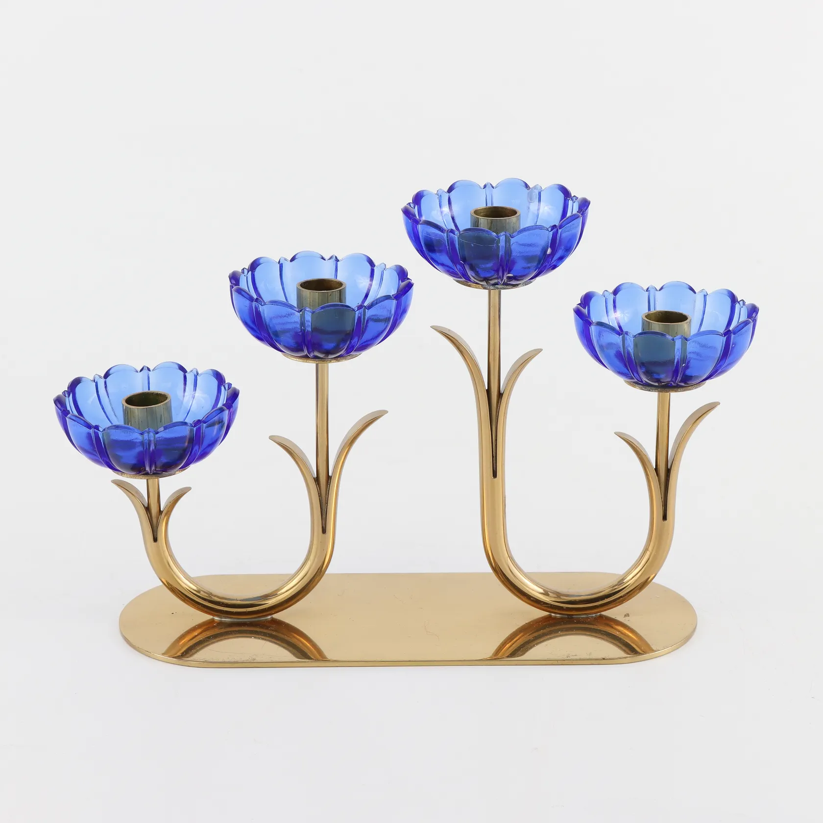 Ljusstake 4 armad, Ystad Metall, Gunnar Ander, höjd ca 14 cm, längd ca 18 cm.