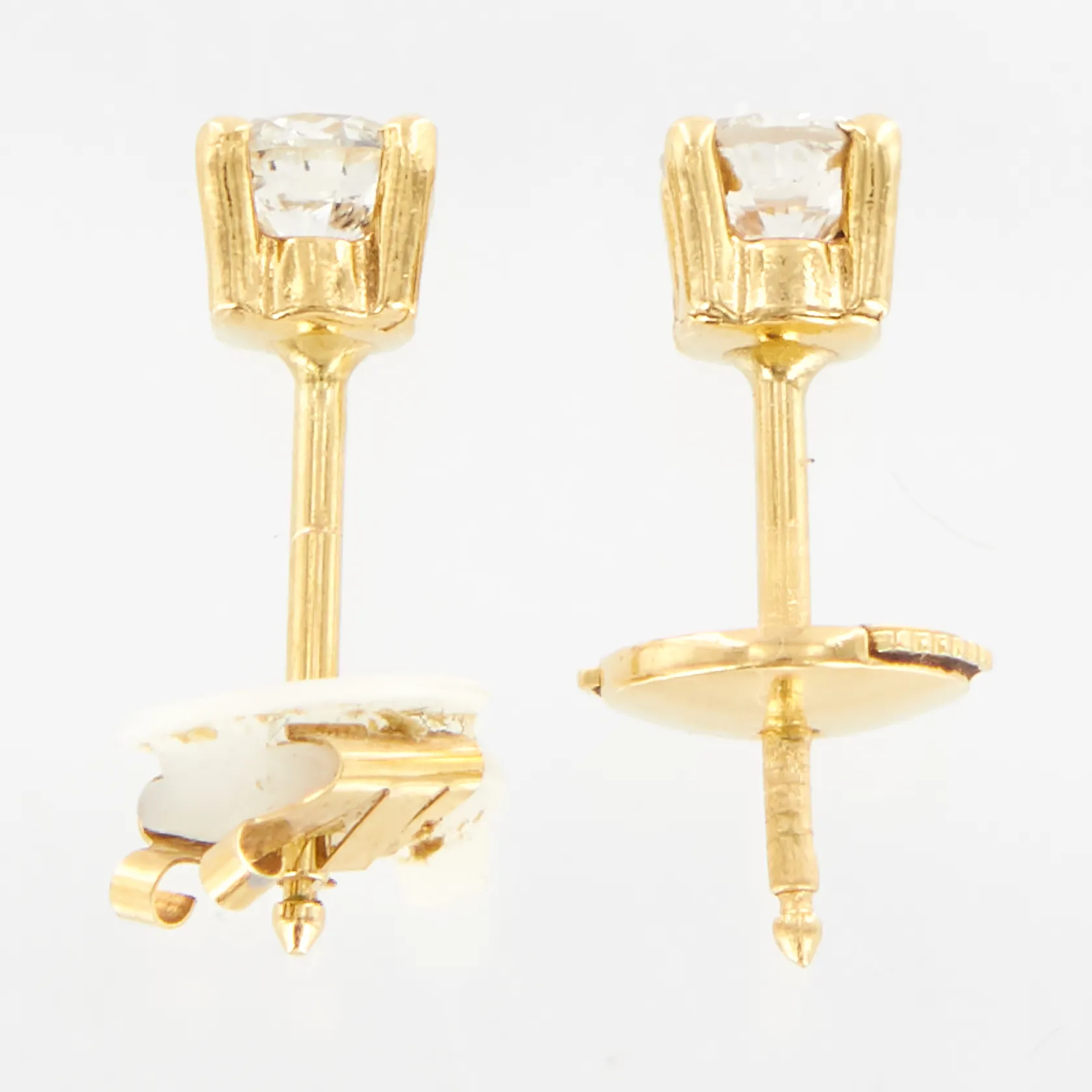 Ett par örhängen med diamanter, 2x ca 0,23 H/I SI2, en stopp i metall/plast, 18K Vikt: 1,1 g.