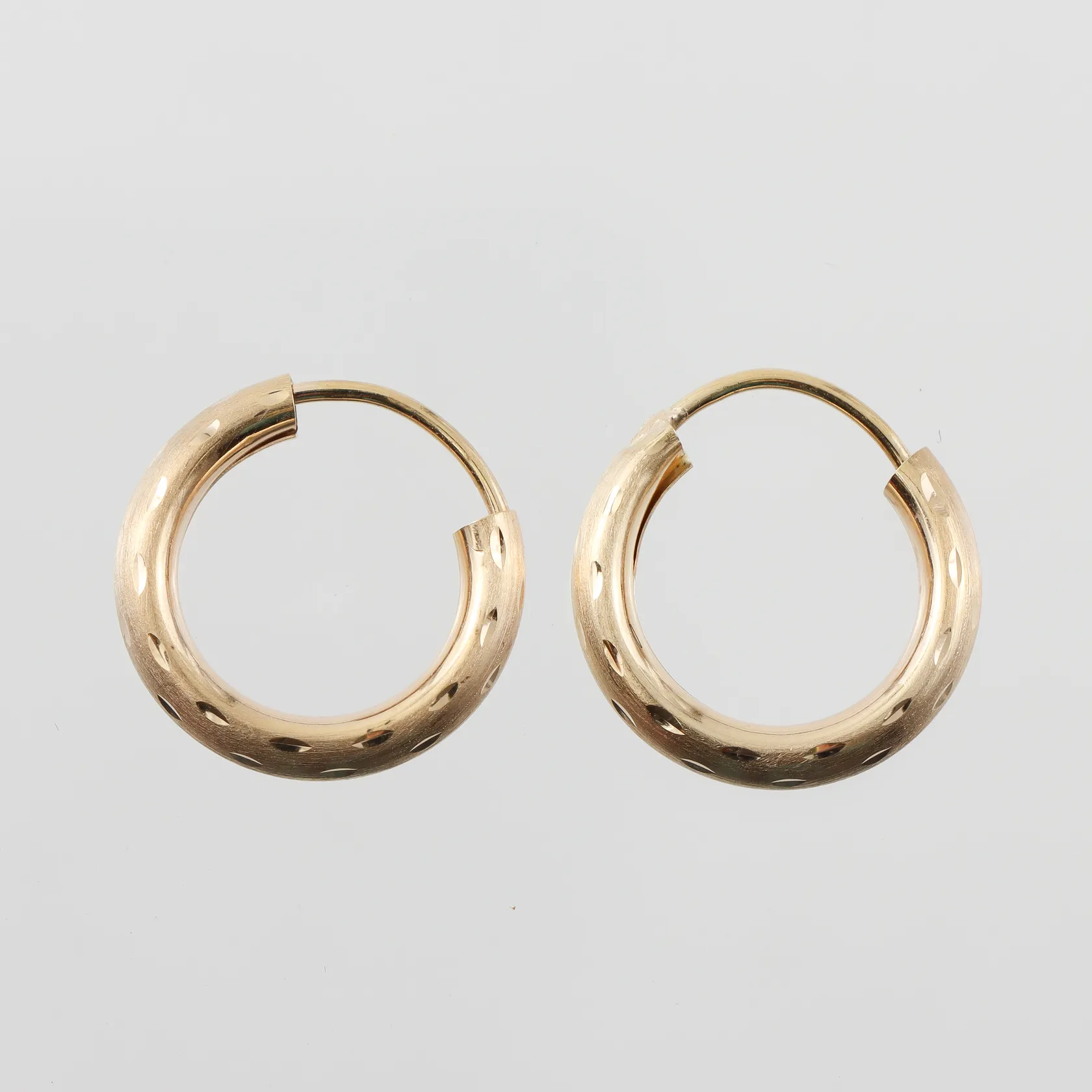 Parörhängen matterade och lite mönstrade, Ø 15mm, bredd 2,5mm, 18k Vikt: 0,9 g.